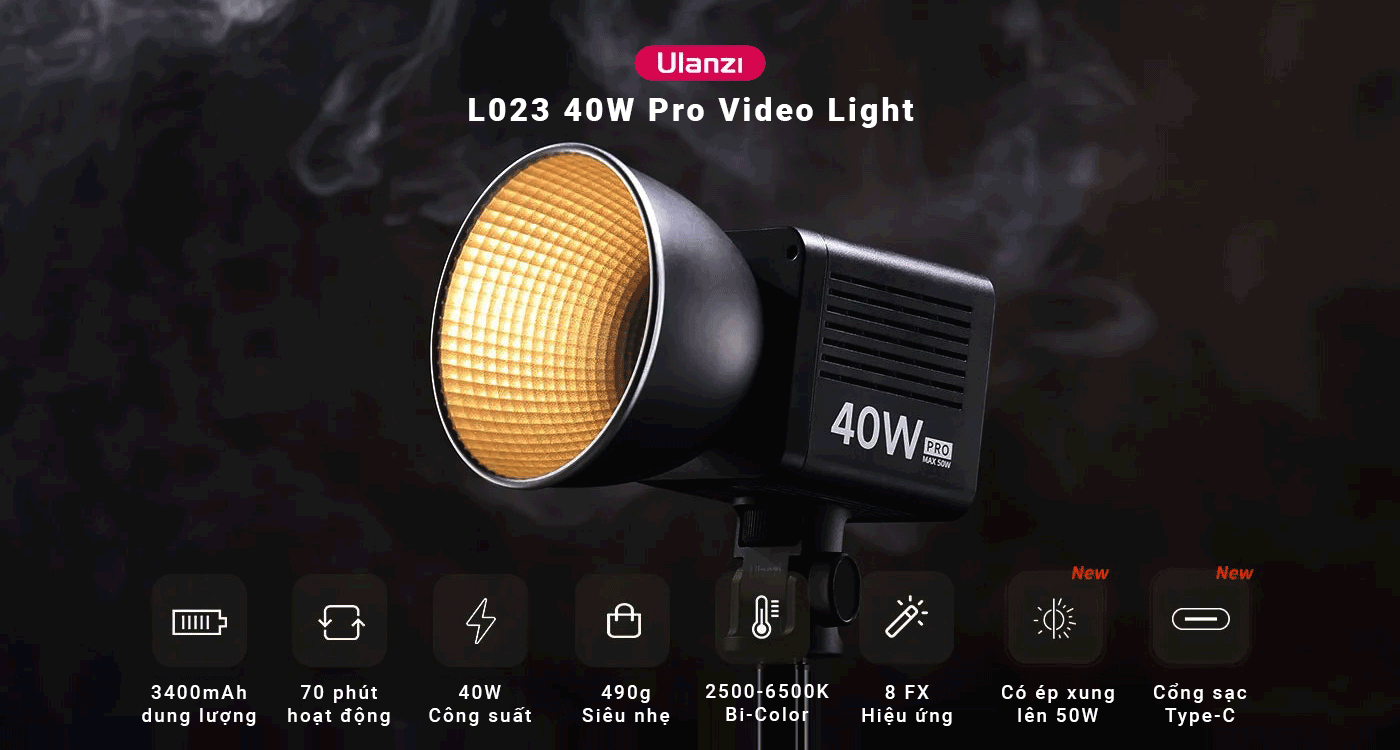 Ulanzi L023 40W Đèn led Bi-Color cầm tay nhỏ gọn có pin