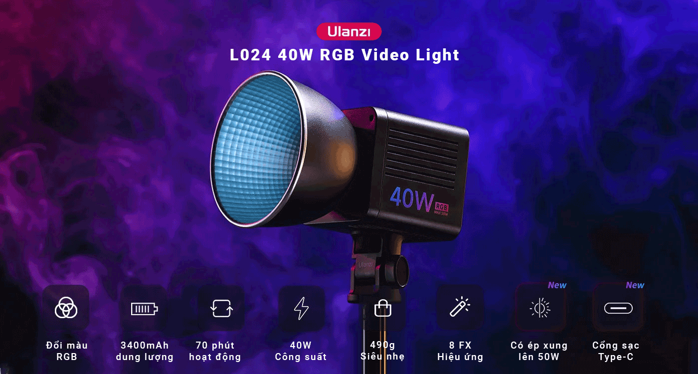 Ulanzi L024 40W RGB đổi màu nhỏ gọn tích hợp pin