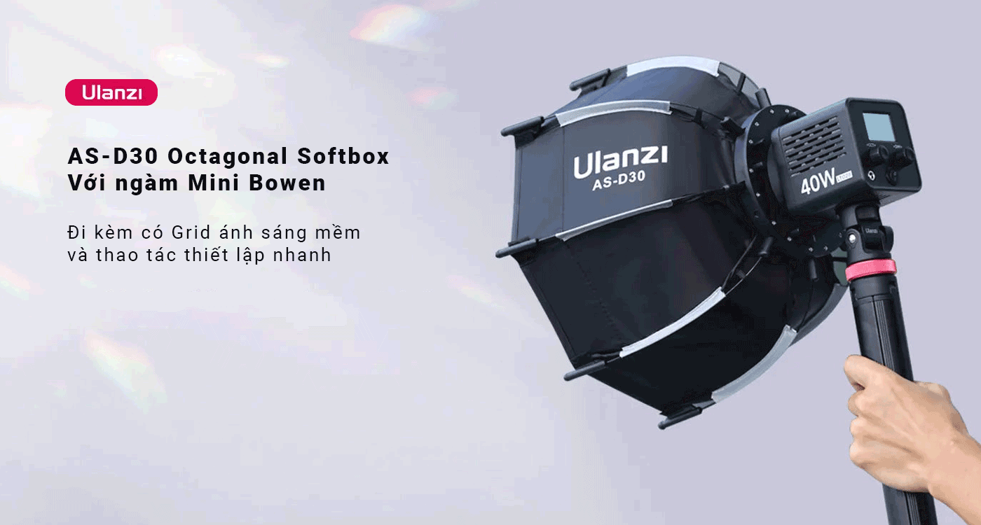 Ulanzi D30 30cm Softbox bát giác kèm Grid ngàm Mini Bowens