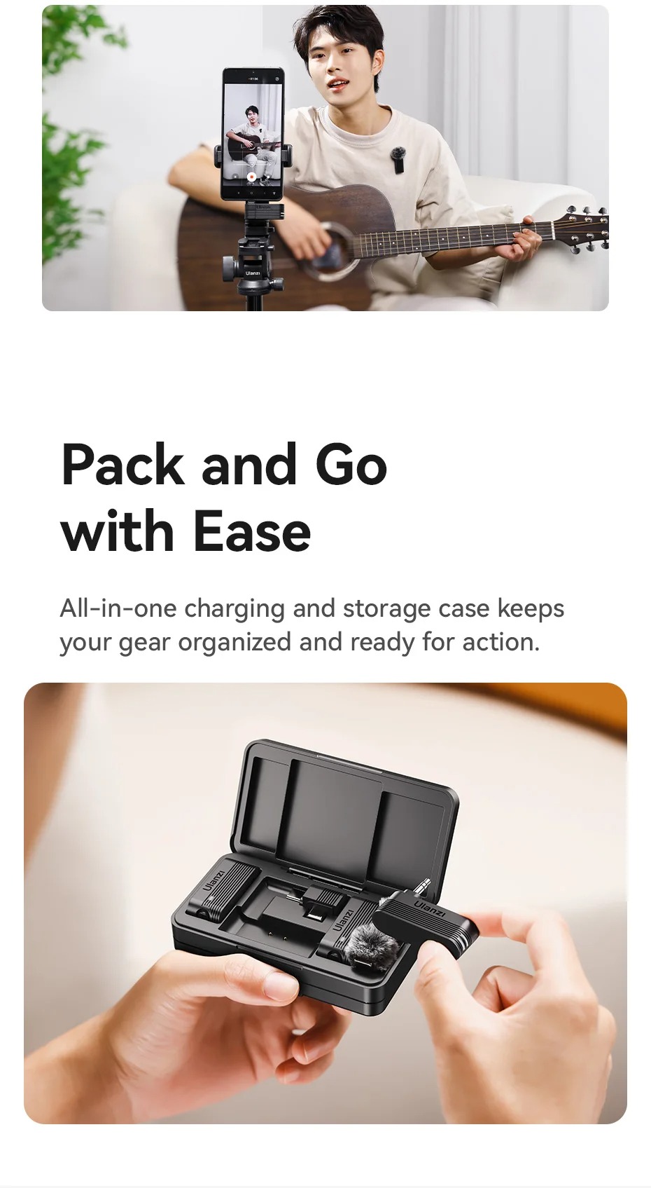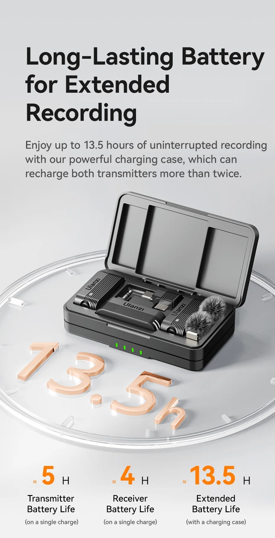 - Trải nghiệm sức mạnh của micro cài áo không dây có hai đầu thu của chúng tôi, hoàn hảo để ghi lại mọi chi tiết trong nhiều bối cảnh khác nhau.