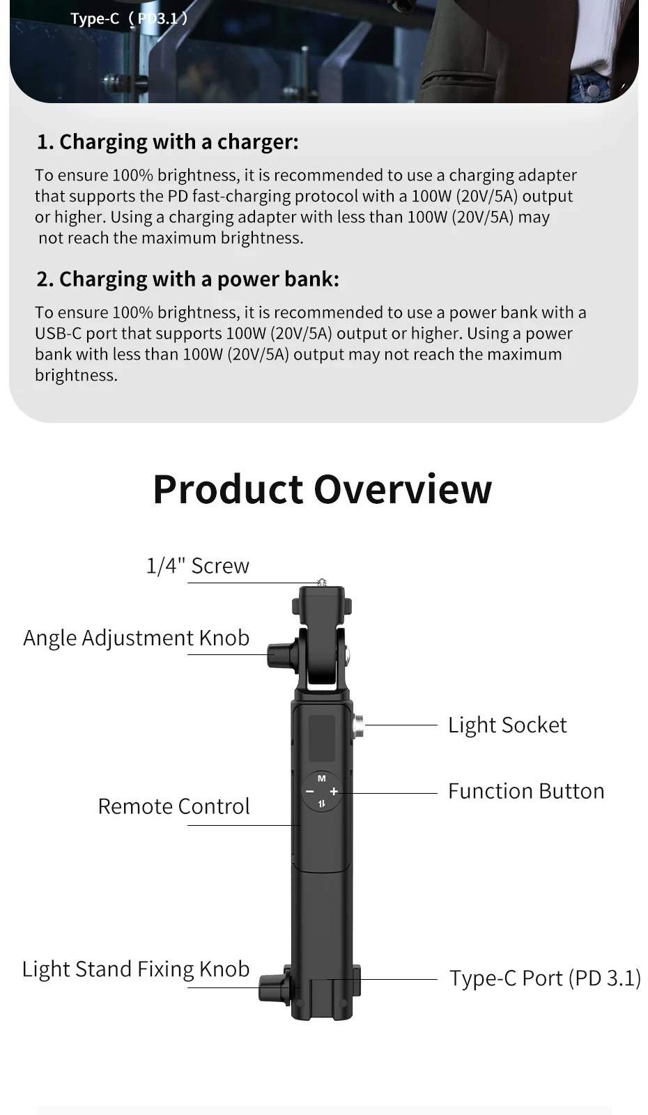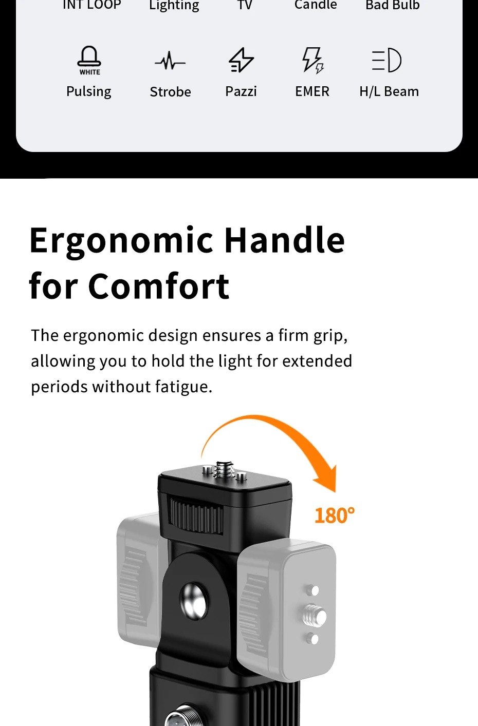 - Nó có thể nhận ra nhiều phương pháp chiếu sáng khác nhau như chuyển động cầm tay, chân đèn bên ngoài, treo và cố định, v.v.