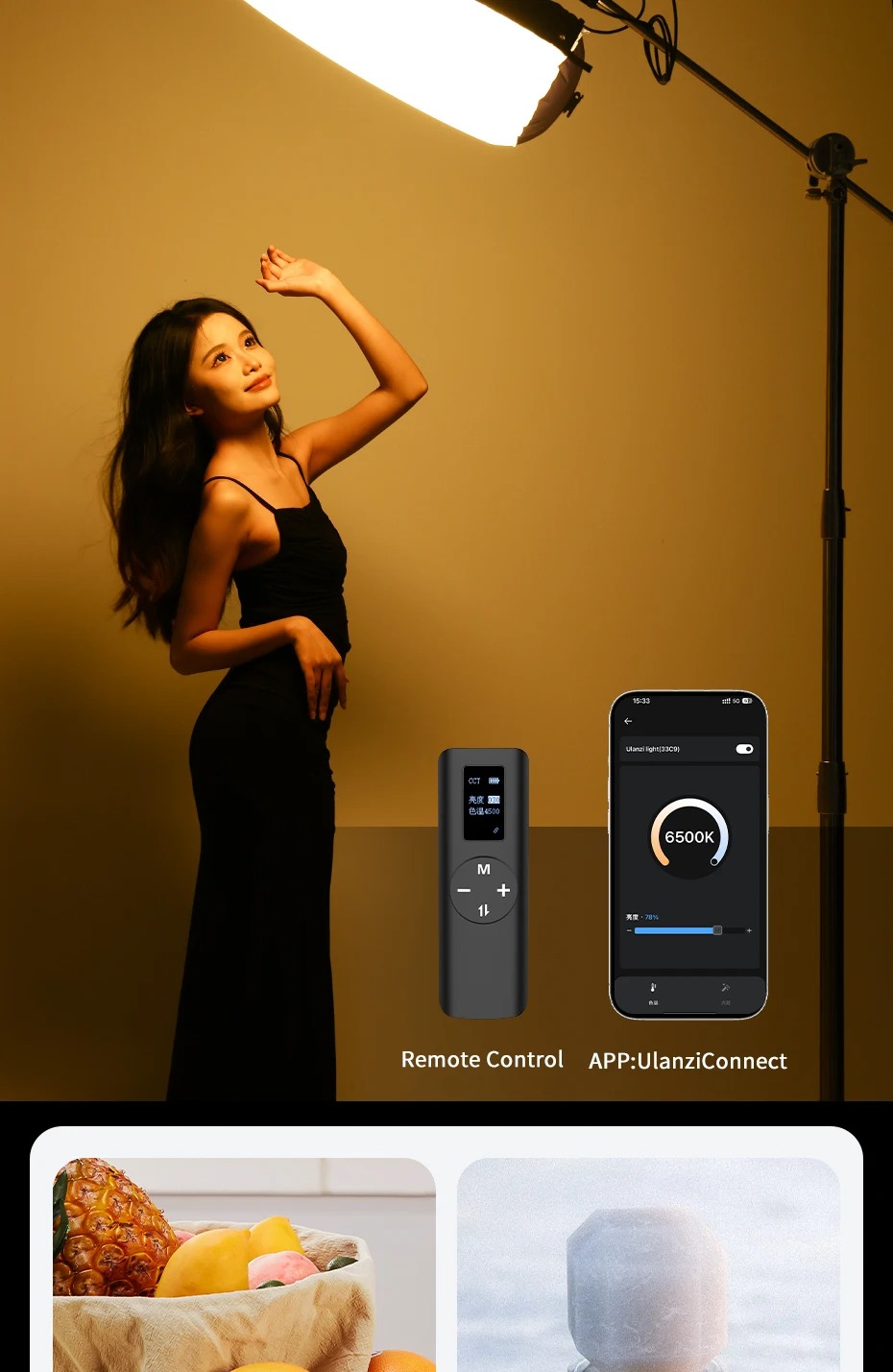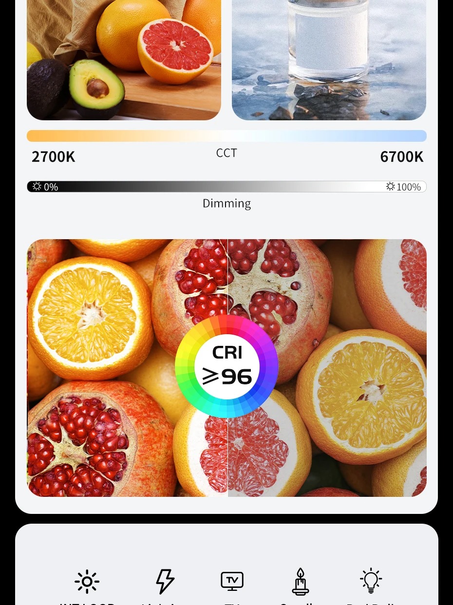 - Nhiệt độ màu và độ sáng có thể được điều chỉnh liên tục và có 10 loại hiệu ứng ánh sáng và bóng tối. Khi đặt đèn ở vị trí cao, bạn vẫn có thể dễ dàng điều khiển ánh sáng.