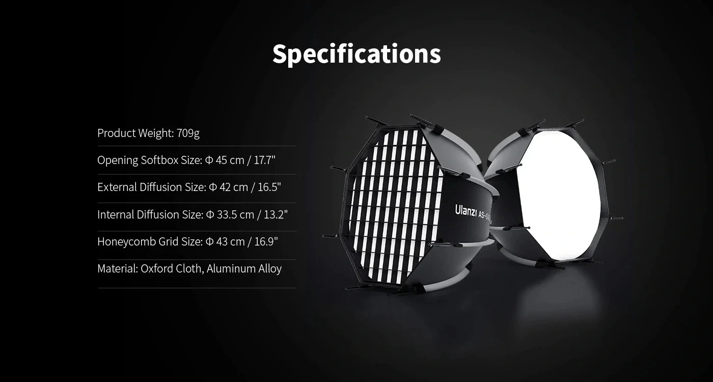 - Kích thước lưới tổ ong: Φ 43 cm / 16,9"
