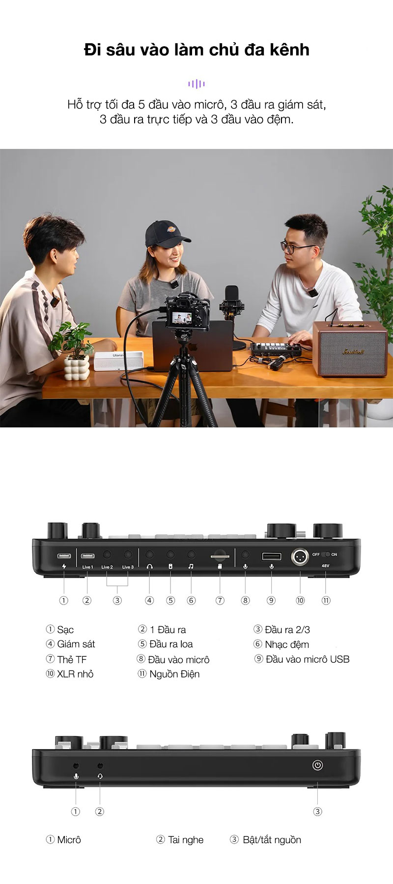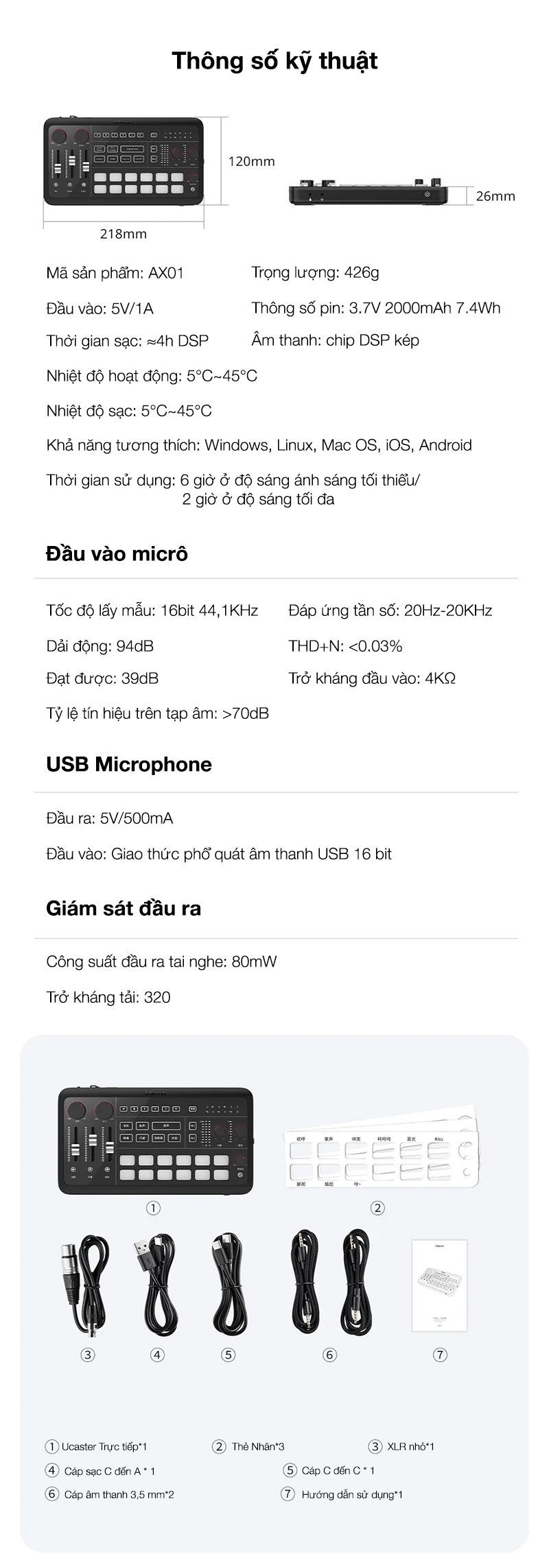 + Đầu vào: Giao thức phổ quát âm thanh USB 16 bit