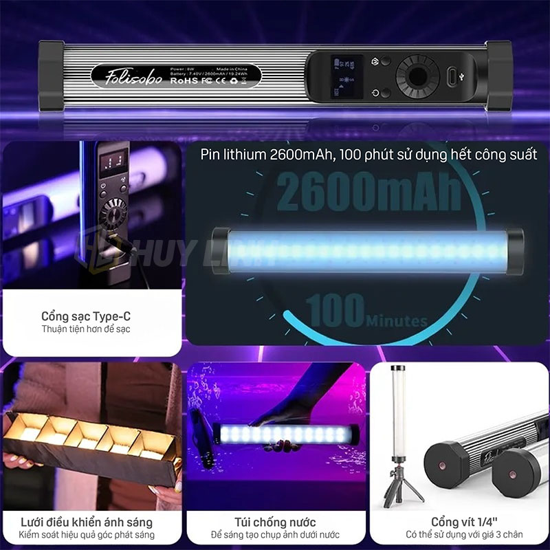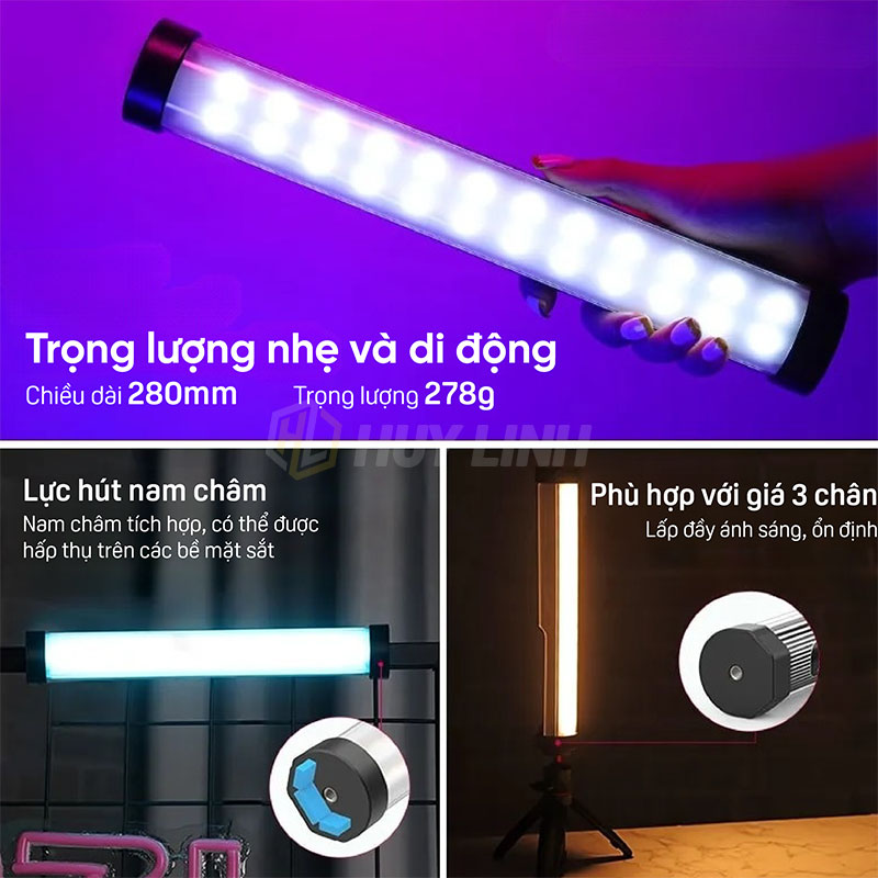 -Được tích hợp với bốn chế độ thực tế trong light stick cầm tay này, RGB, CCT, HSI và 10 Chế độ cảnh. RGB(HSI) đủ màu từ 0-1530, CCT dao động từ 2500K (ấm) đến 8500K (lạnh), Độ sáng có thể điều chỉnh 0-100%. Hơn nữa, bạn có thể quản lý light stick này một cách dễ dàng bằng ứng dụng (Quét mã để tải xuống). Khi chụp một mình, bạn có thể điều khiển đèn cách xa vài mét bằng điện thoại.