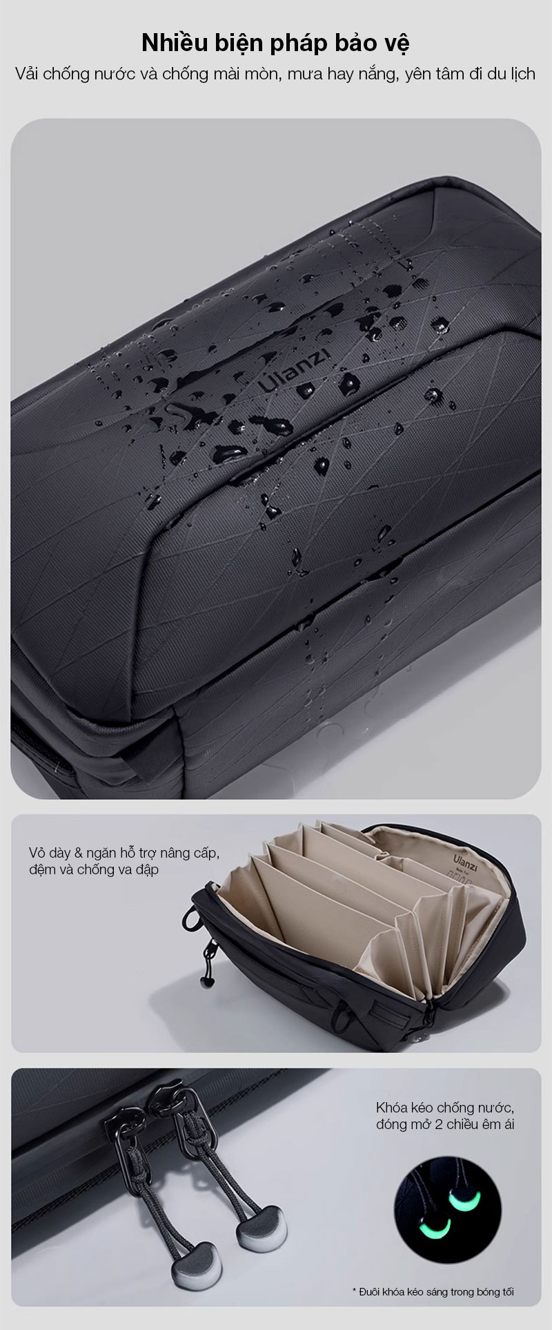 - Chất liệu polyester chống nước, đảm bảo độ an toàn cho các thiết bị bên trong