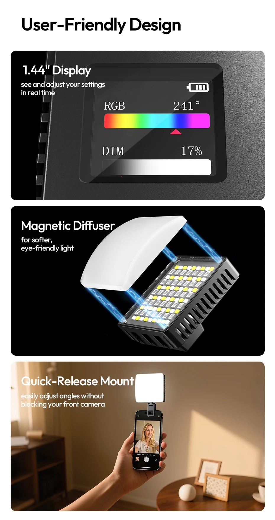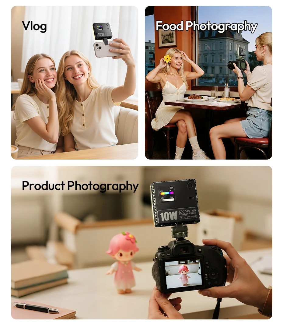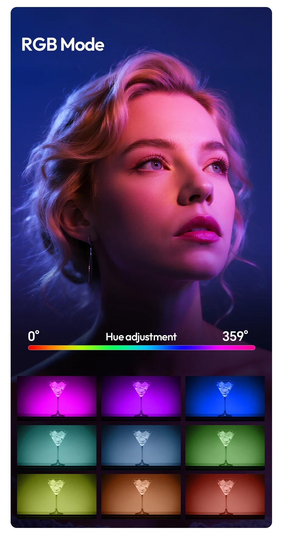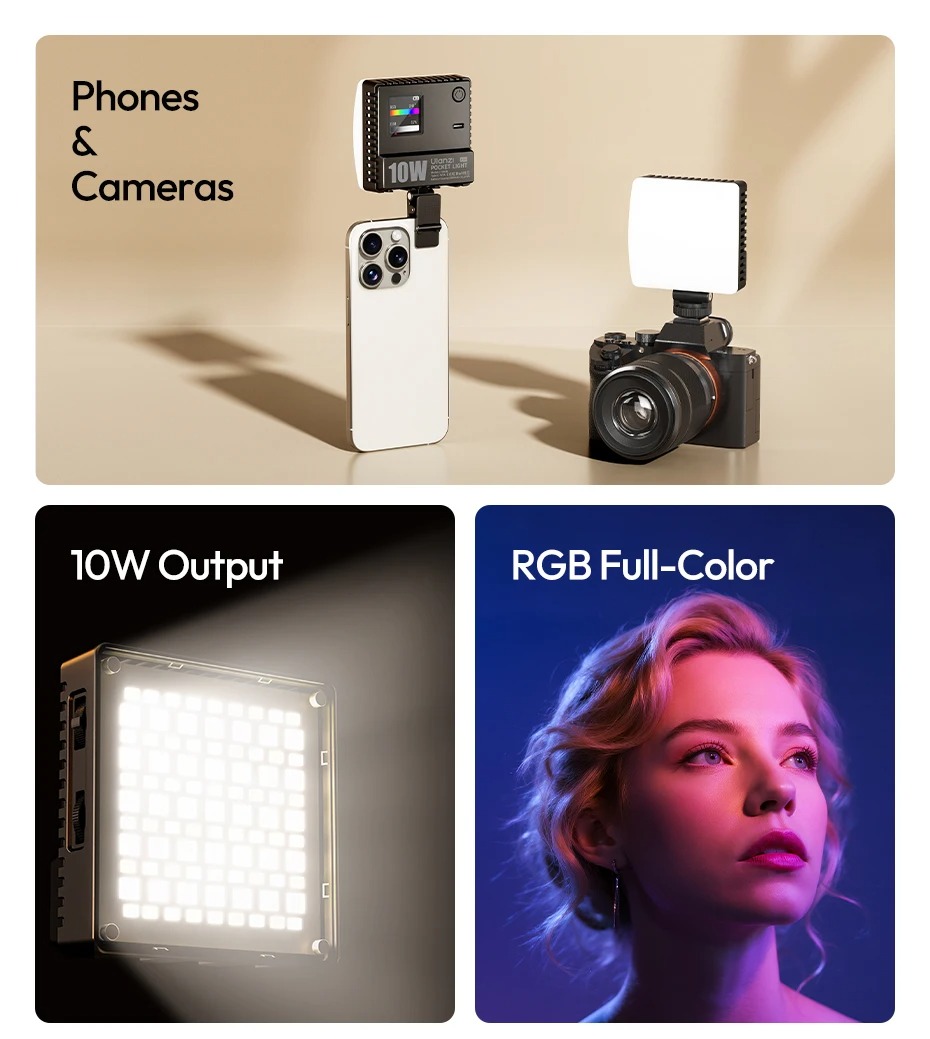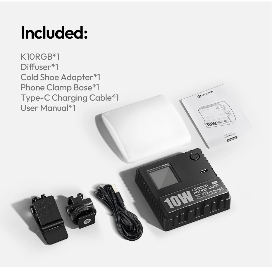 - Độ sáng (không softbox): ≈1120Lux@9000K, 0.5m