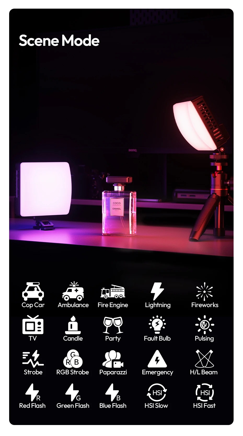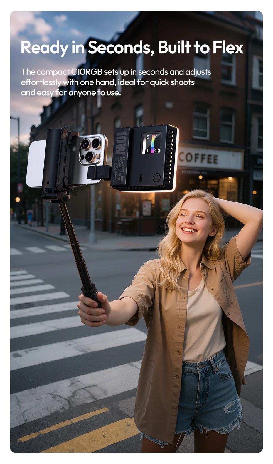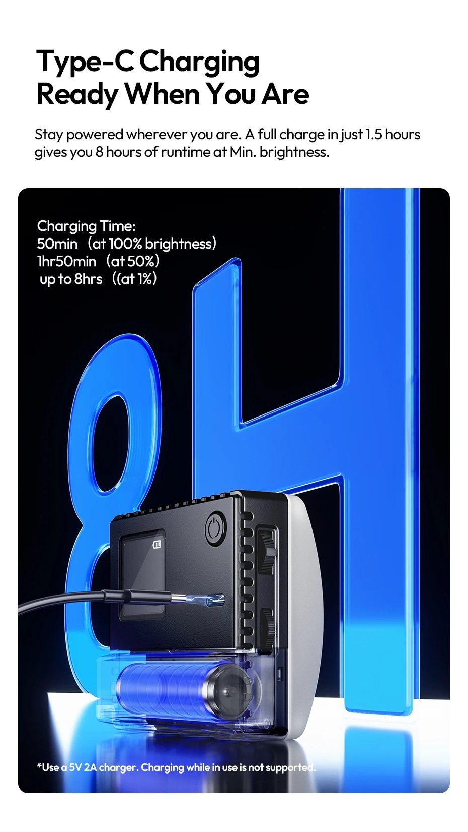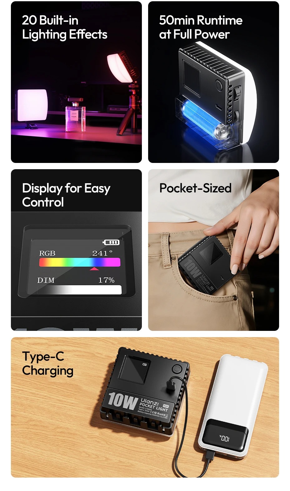 - Độ sáng (không softbox): ≈1120Lux@9000K, 0.5m