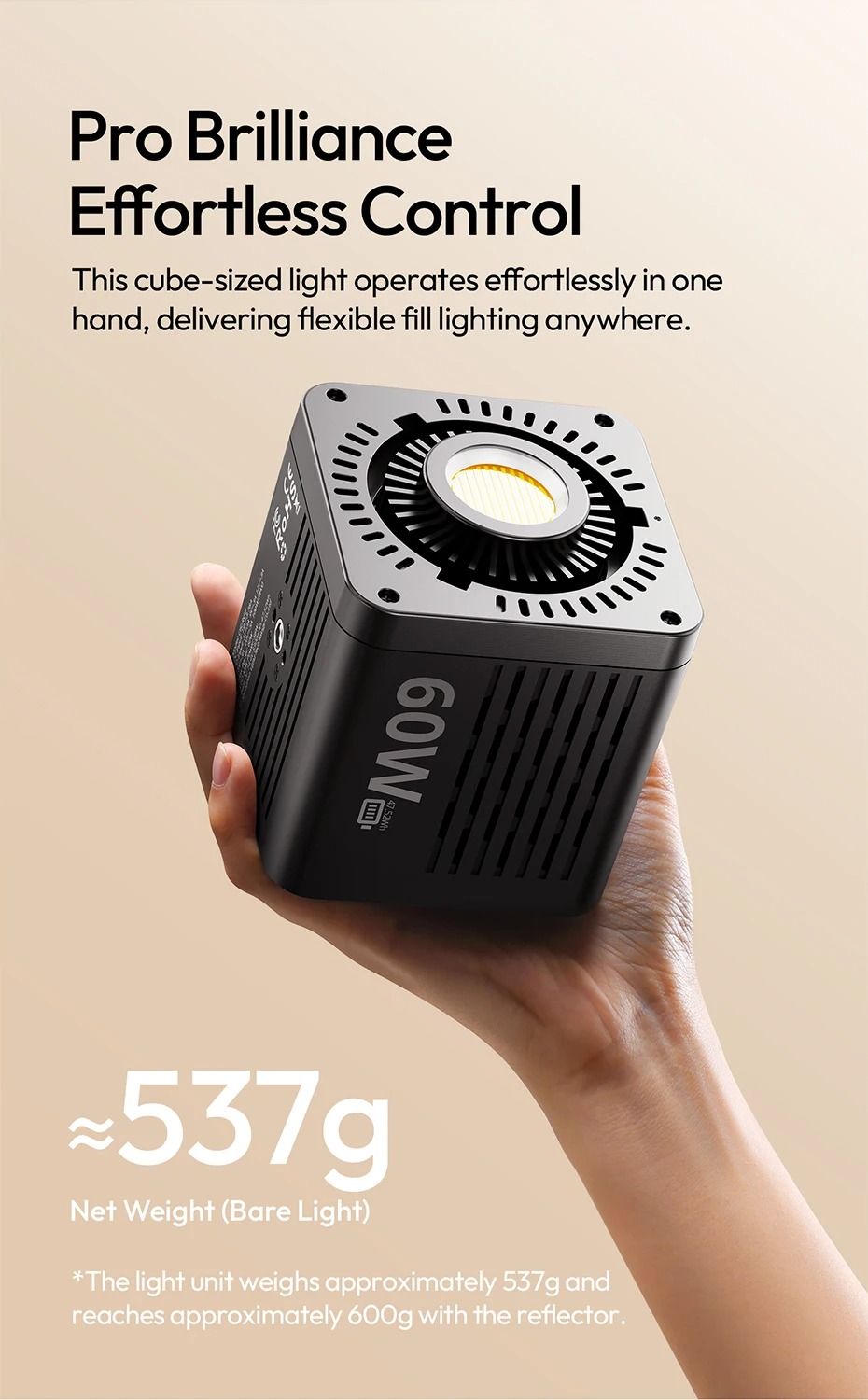 - Trọng lượng tịnh (Chỉ đèn): Khoảng 537g / 1.18lb