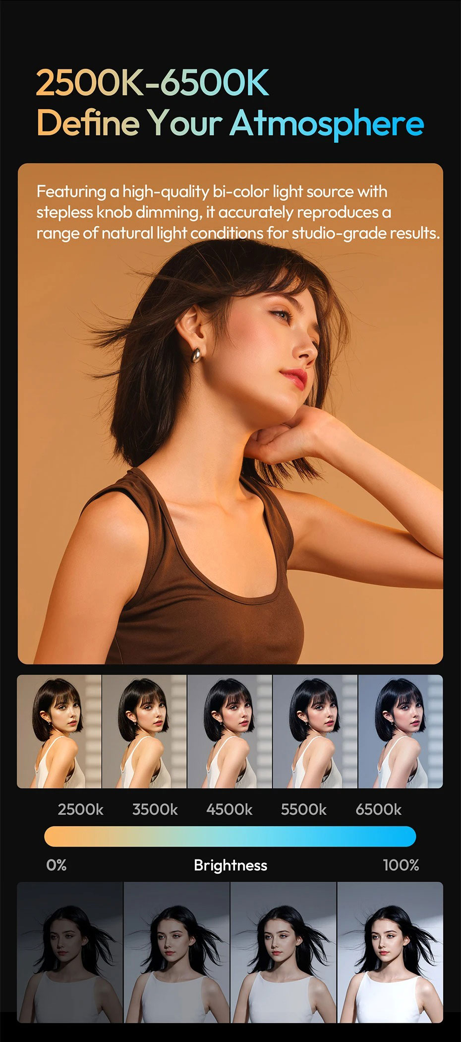 - Nhiệt độ màu: 2500K – 6500K