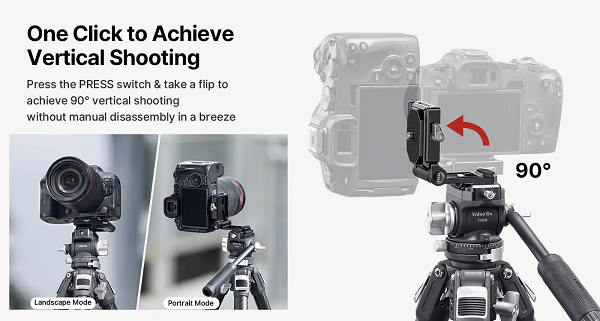 - Một cú nhấp chuột để chụp dọc : Nhấn công tắc NHẤN và lật để đạt được góc chụp dọc 90° mà không cần tháo gỡ thủ công một cách dễ dàng.