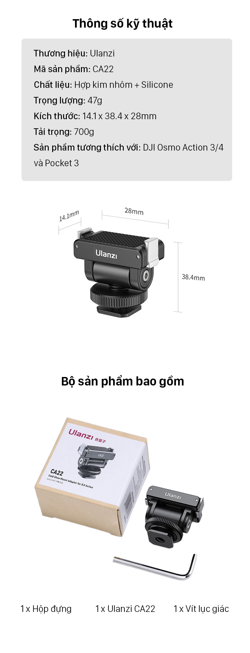 - Sản phẩm tương thích với: DJI Osmo Action 3/4 và Pocket 3