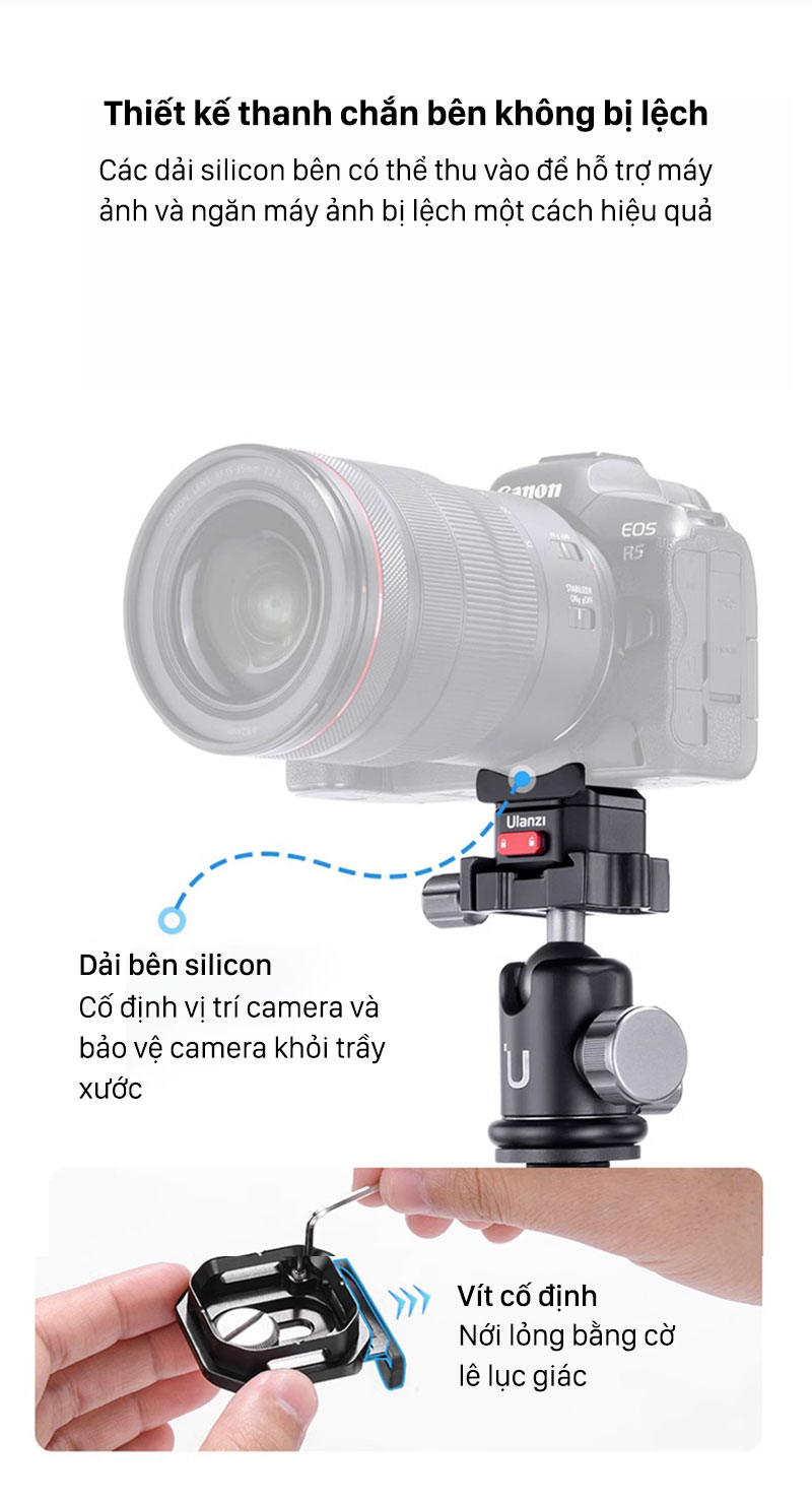 - Các dải Silicon để hỗ trợ máy ảnh và ngăn thiết bị bị lệch một cách hiệu quả.
