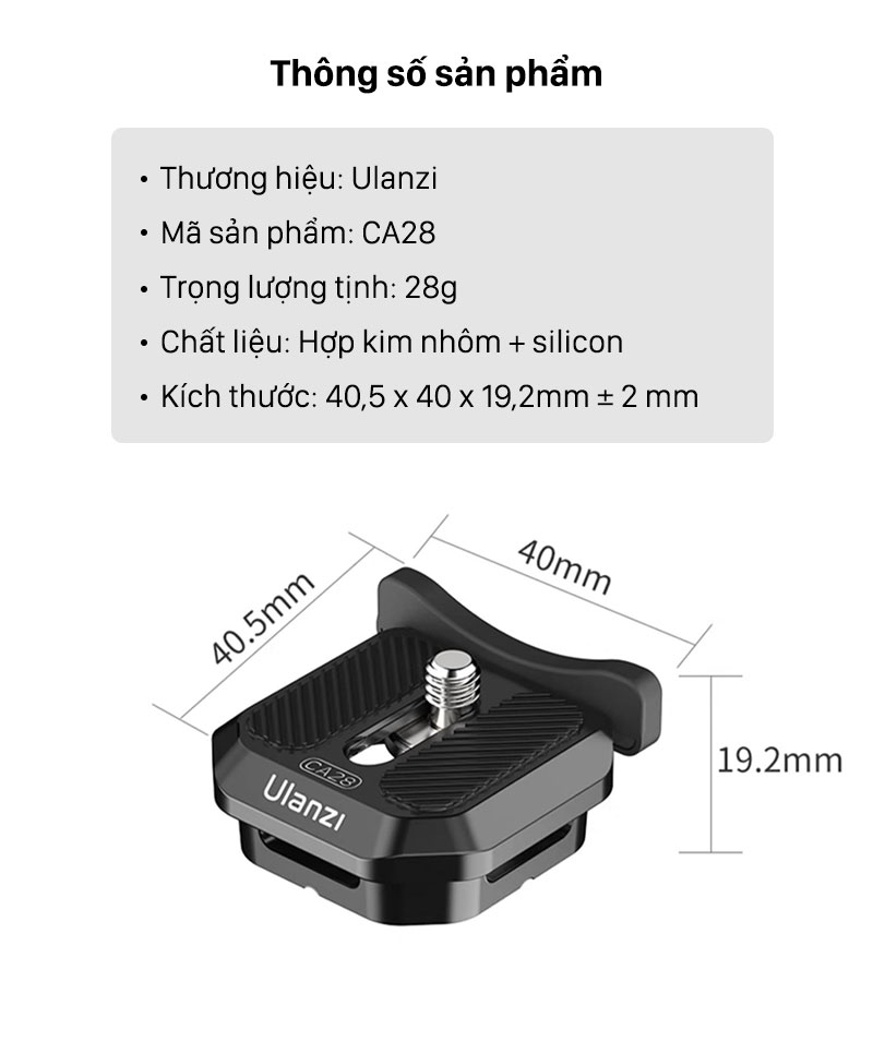 - Kích thước: 40,5 x 40 x 19,2mm.