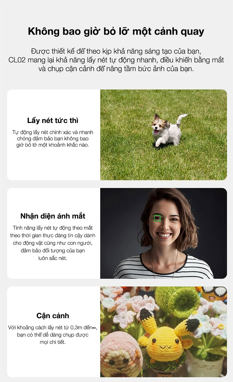 - Khoản cách lấy nét: 0.3m~