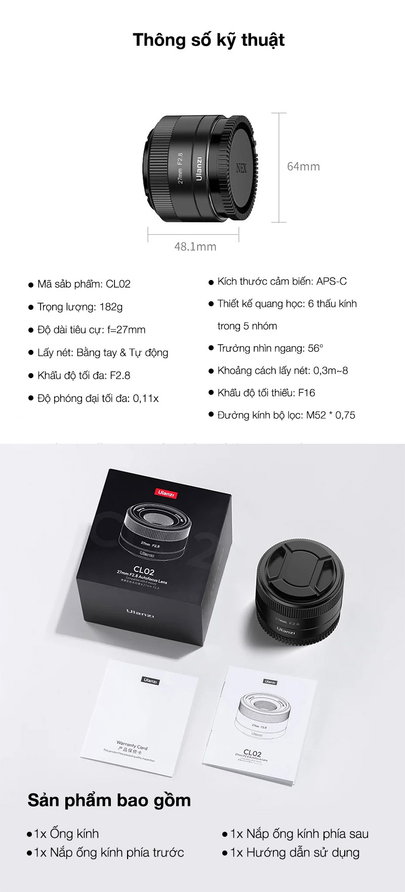- 1 x Nắp đậy lens mặt sau