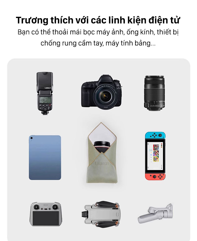 - Sản phẩm tương thích với: các thiết bị điện tử và máy ảnh, lens...