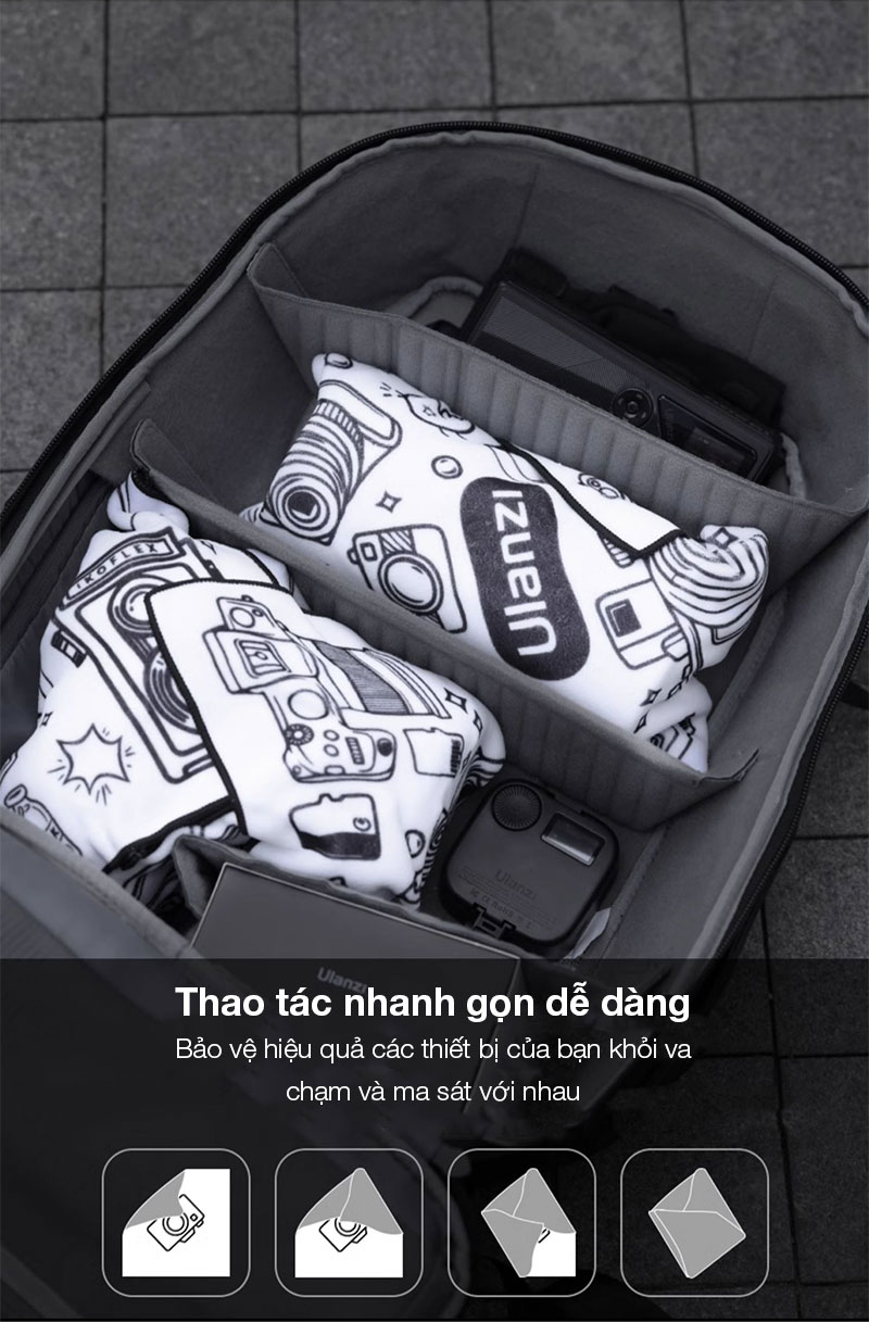 - Thao tác nhanh gọn dễ dàng bảo vệ hiệu quả các thiết bị của bạn khỏi va chạm và ma sát với nhau