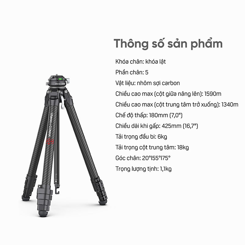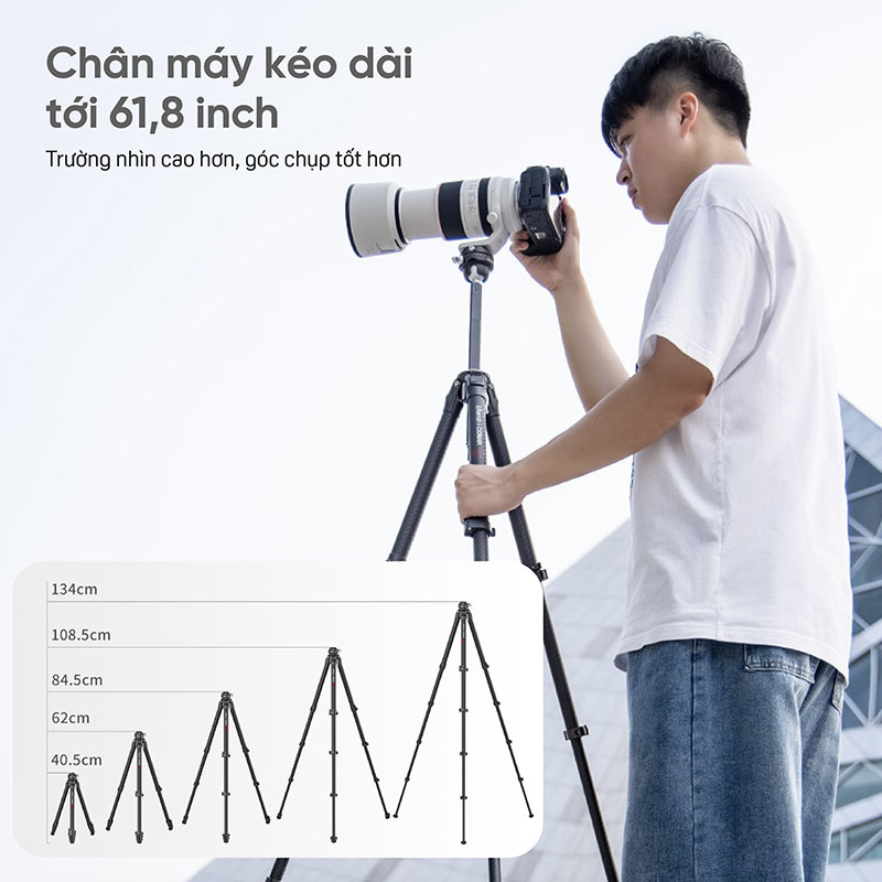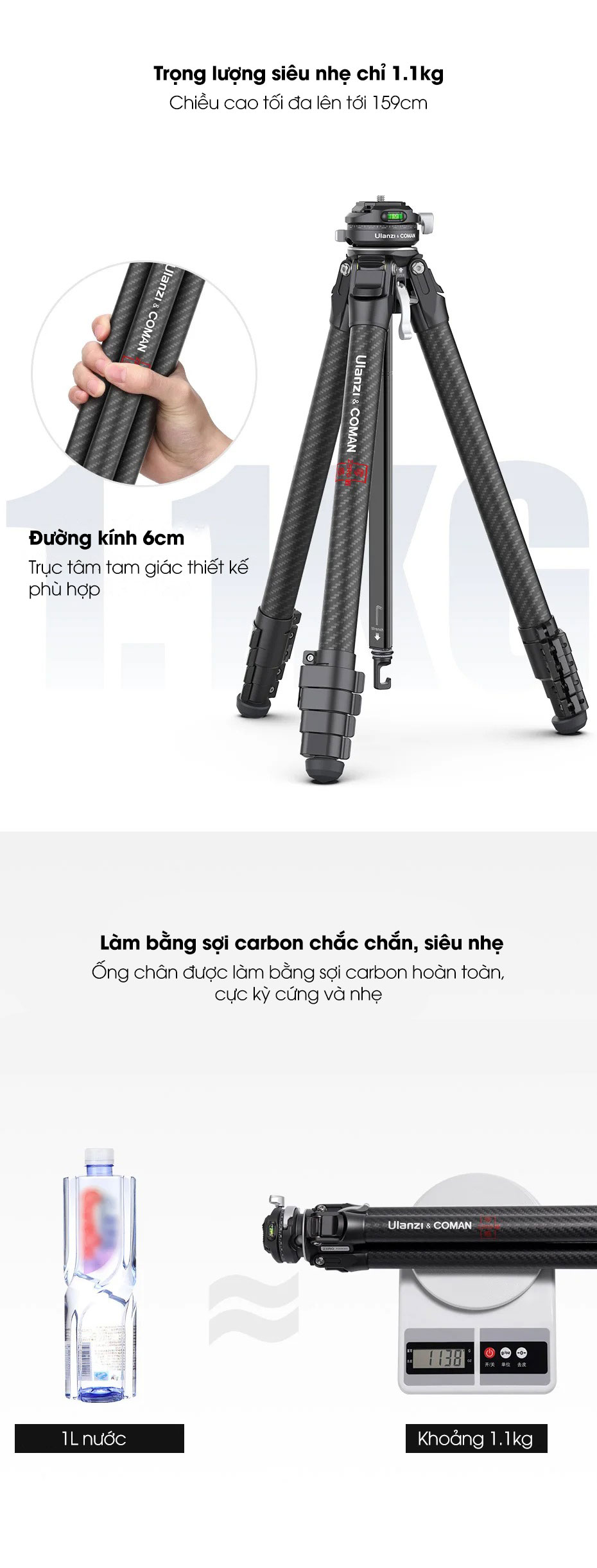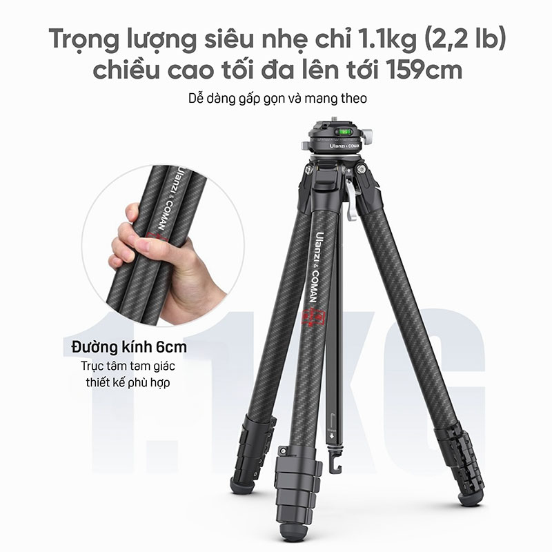 - Trọng lượng siêu nhẹ chỉ 1.1kg (2,2 lb), chiều cao tối đa lên tới 159cm