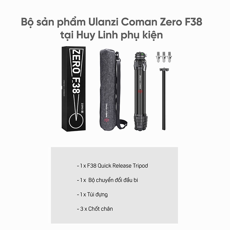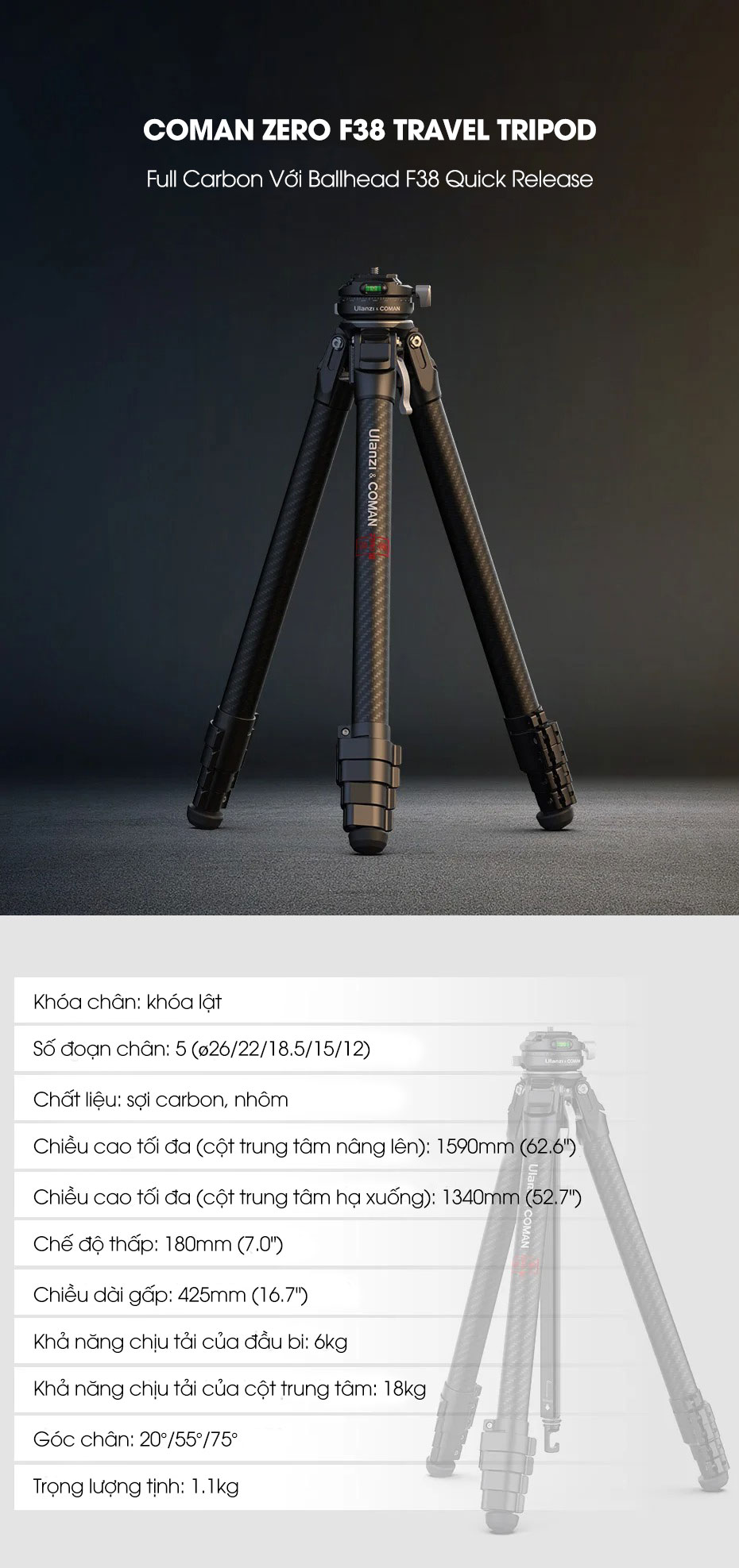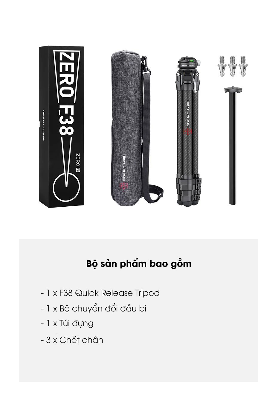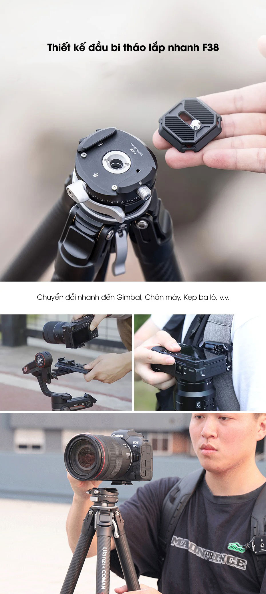 - Đi kèm F38 Quick Release plate tương thích với Arca-Swiss tripod head