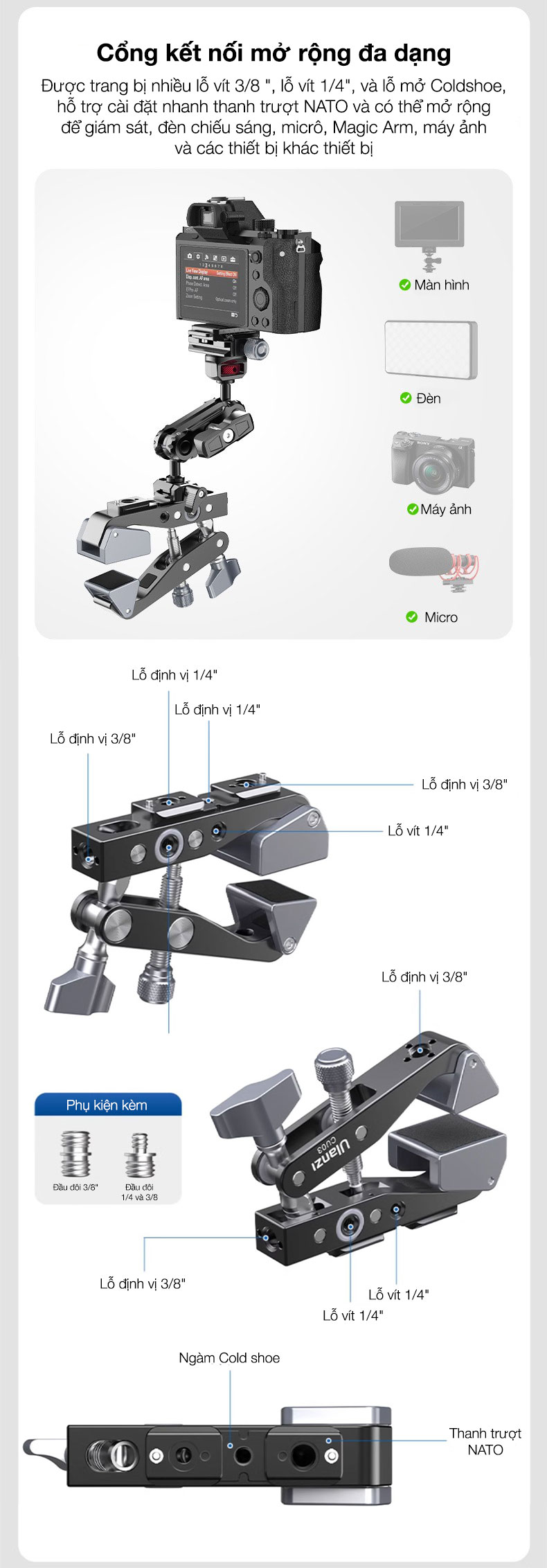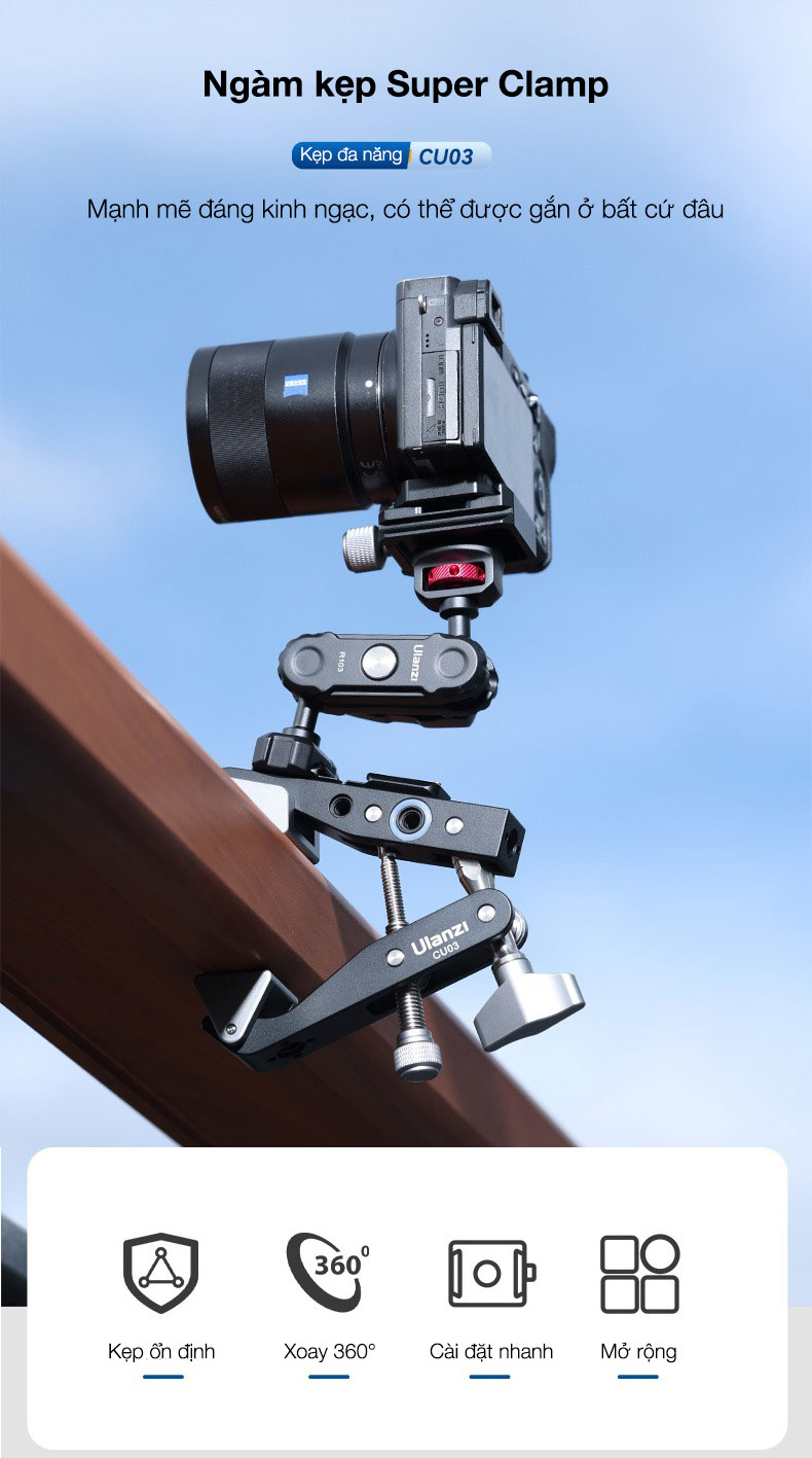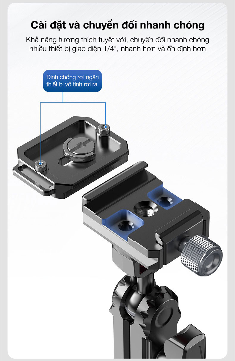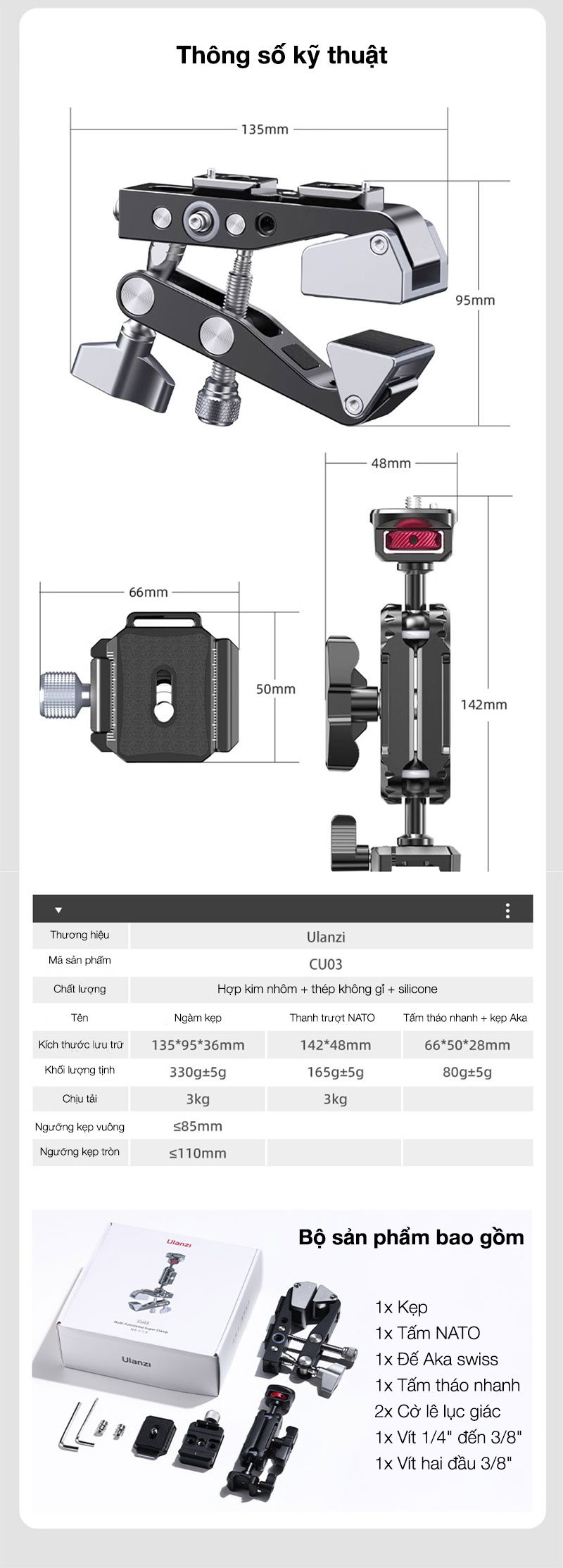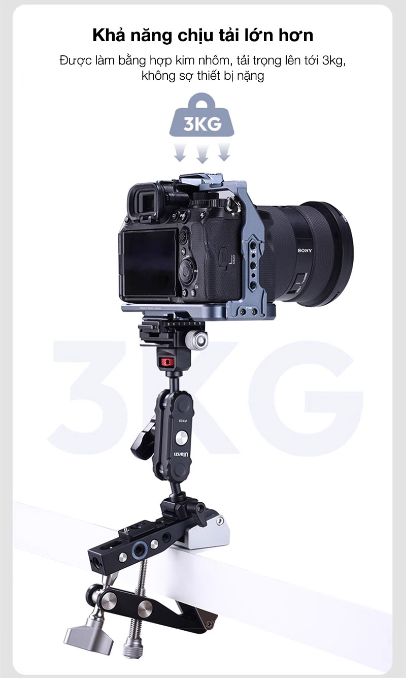 - Được làm bằng hợp kim nhôm, tải trọng lên tới 3kg, không sợ thiết bị nặng