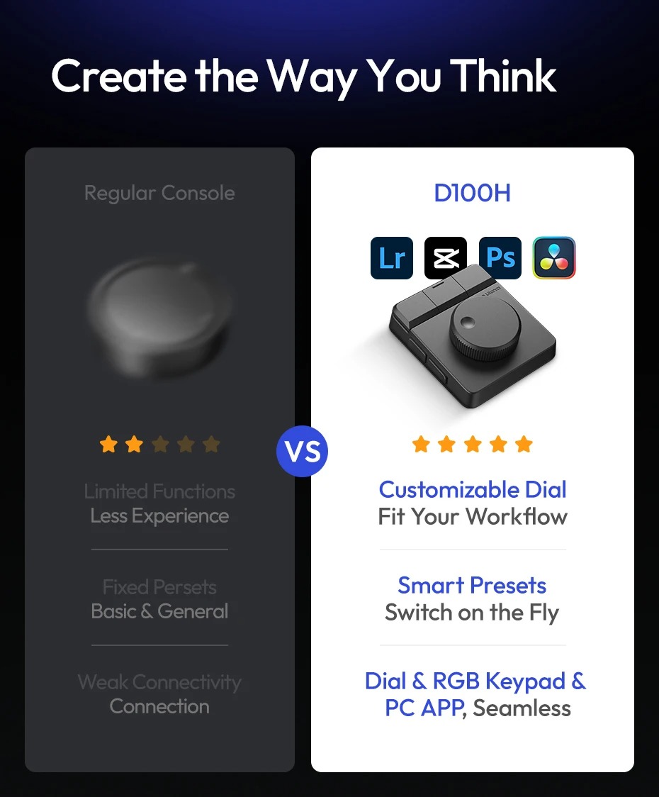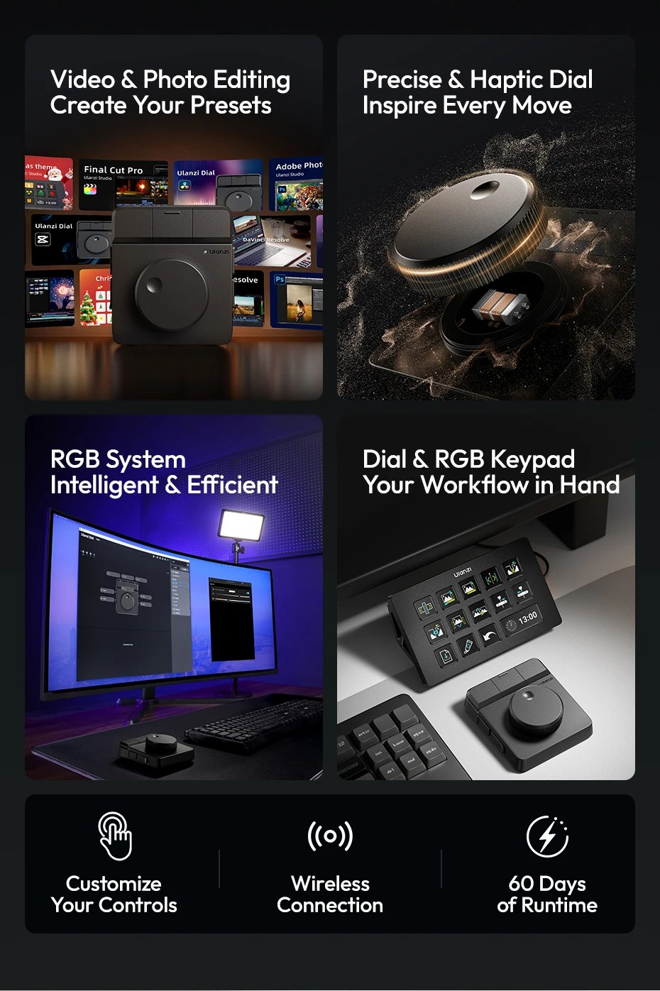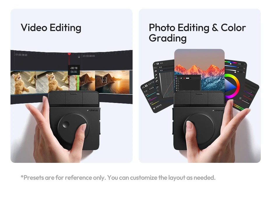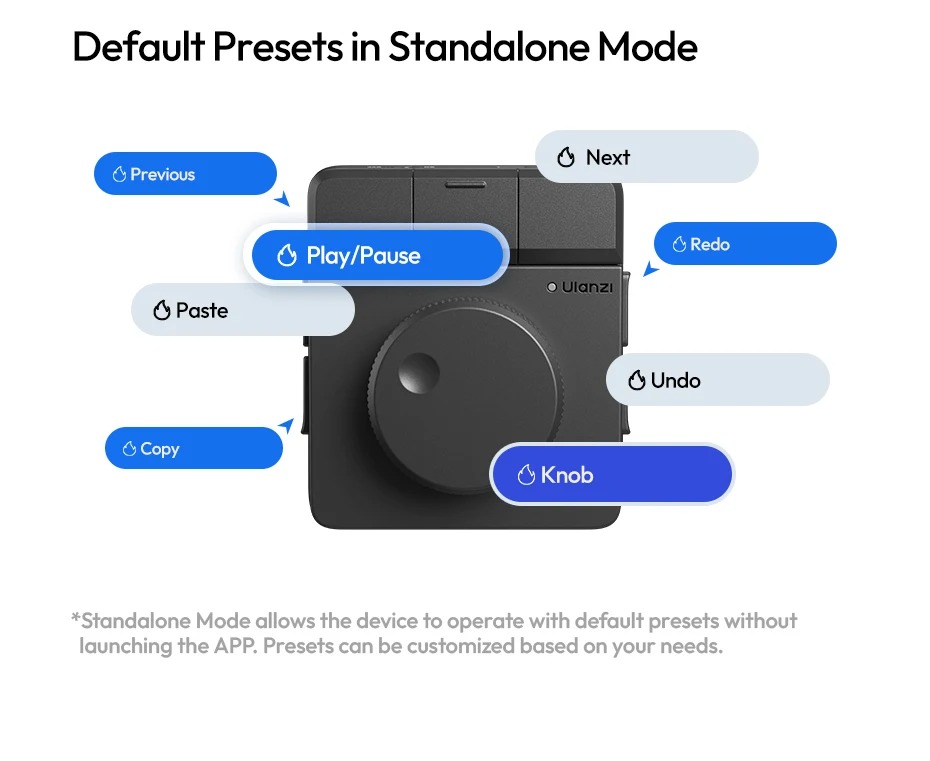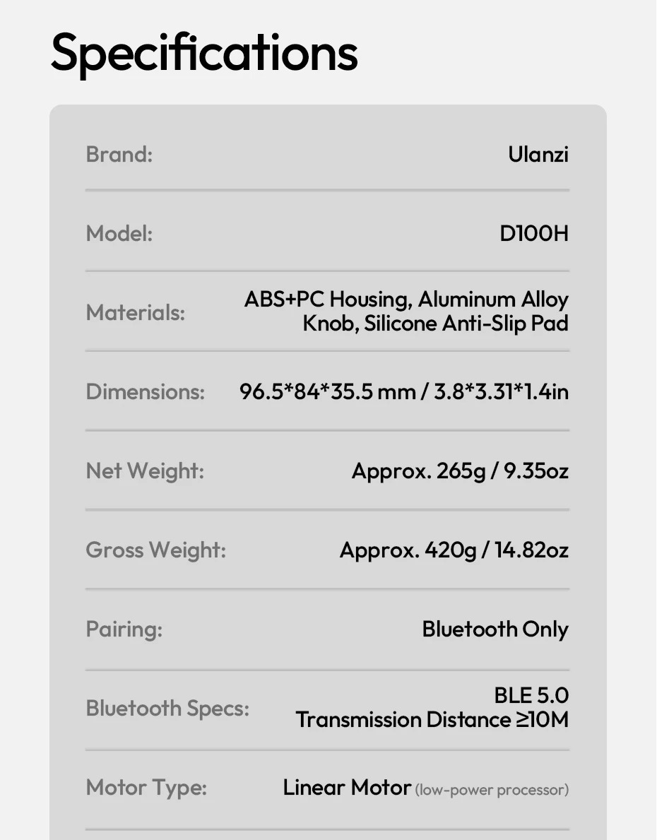- Vật liệu: Vỏ ABS+PC, Núm xoay bằng hợp kim nhôm, Miếng đệm chống trượt Silicone