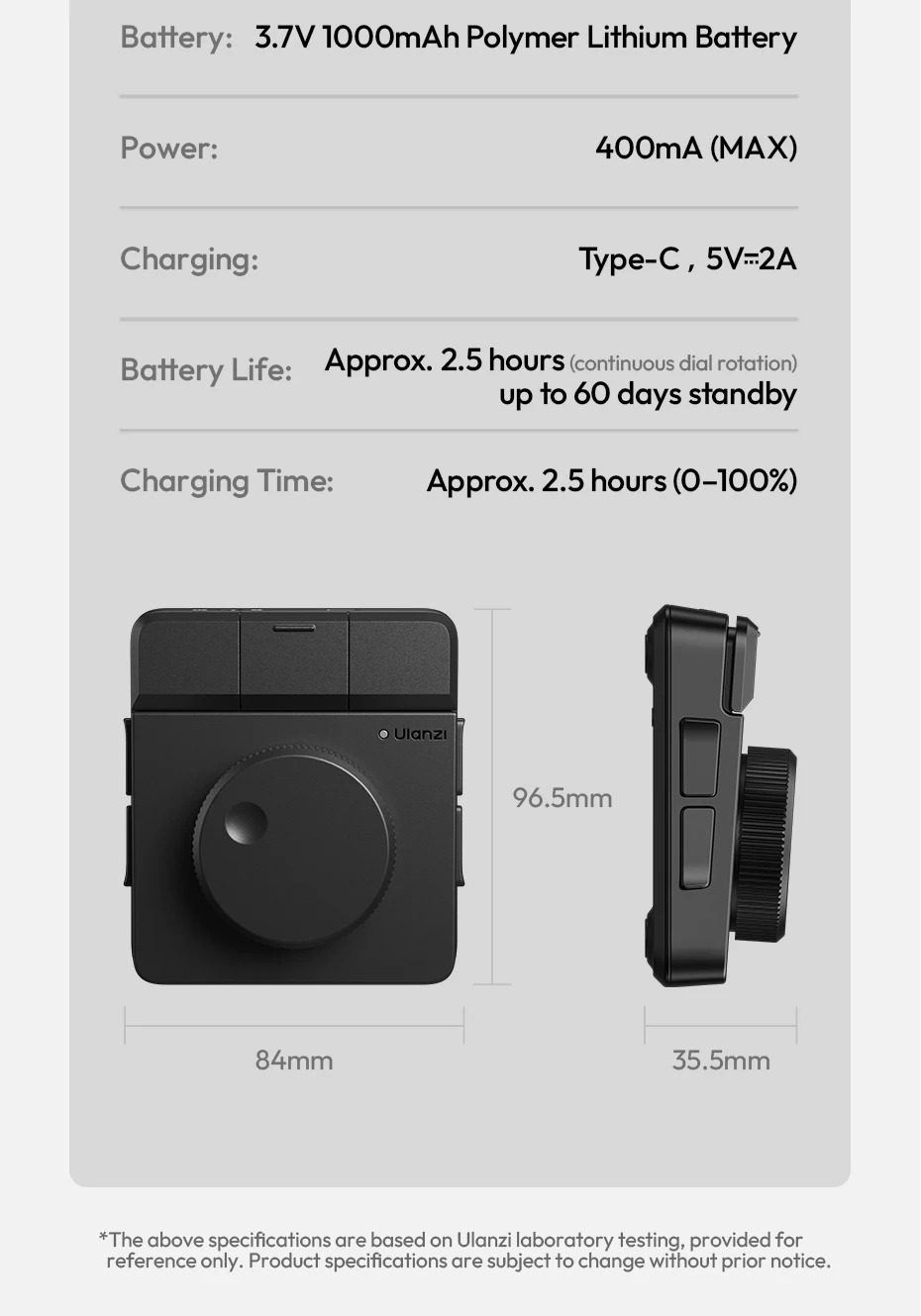 -Thời lượng pin: Khoảng 2.5 giờ (khi xoay liên tục) hoặc lên đến 60 ngày chờ.