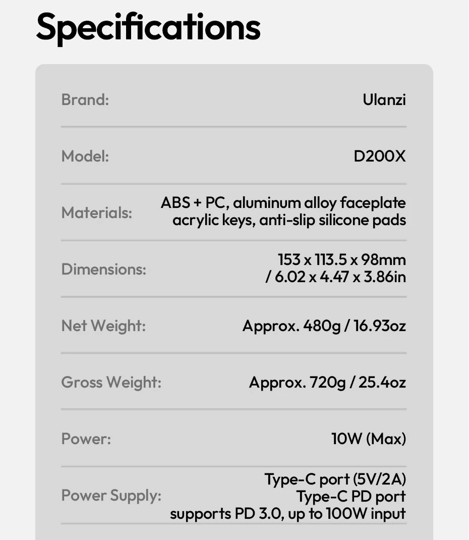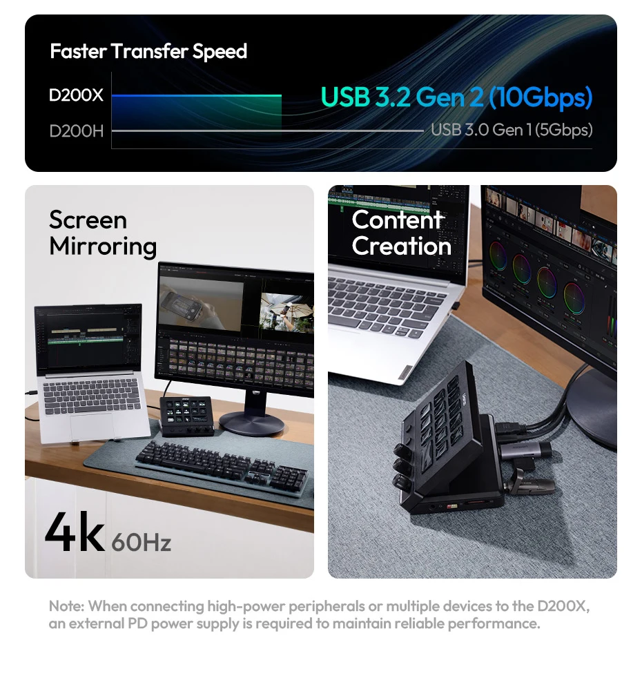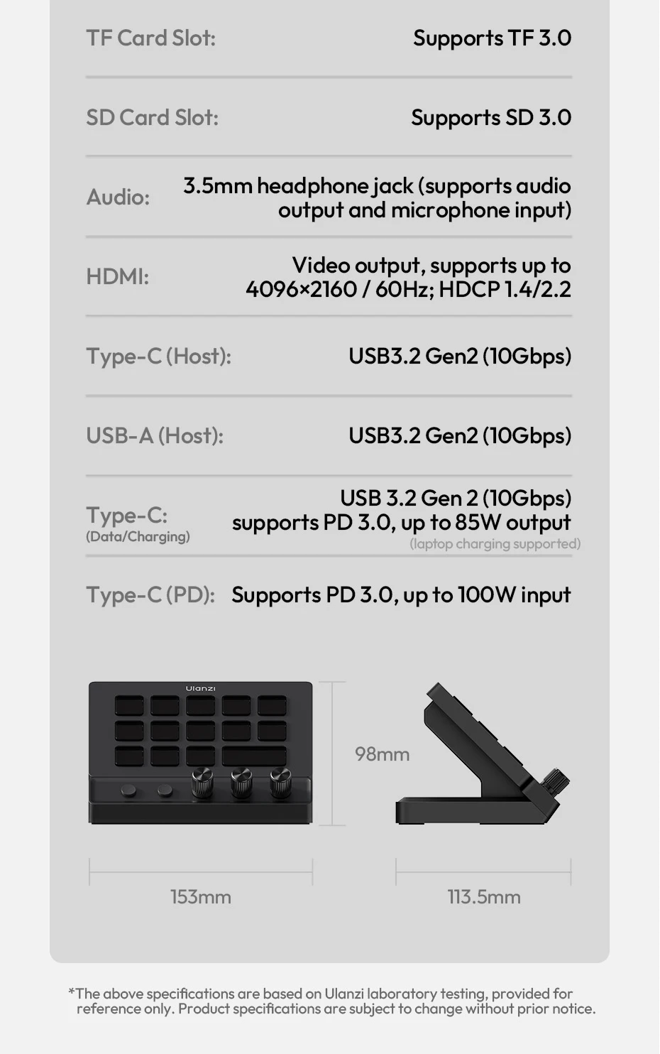 - Nguồn cấp: Cổng Type-C (5V/2A) hoặc cổng PD hỗ trợ đầu vào lên đến 100W.