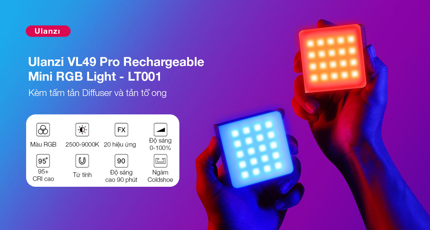 Ulanzi VL49 Pro Đèn led RGB mini kèm tấm tản Diffuser và tản tổ ong