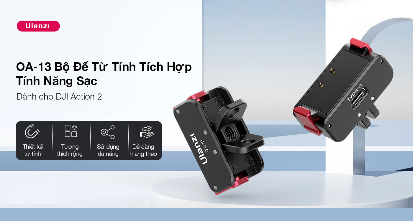 Ulanzi OA-13 bộ đế từ tính tích hợp tính năng sạc dành cho DJI Action 2