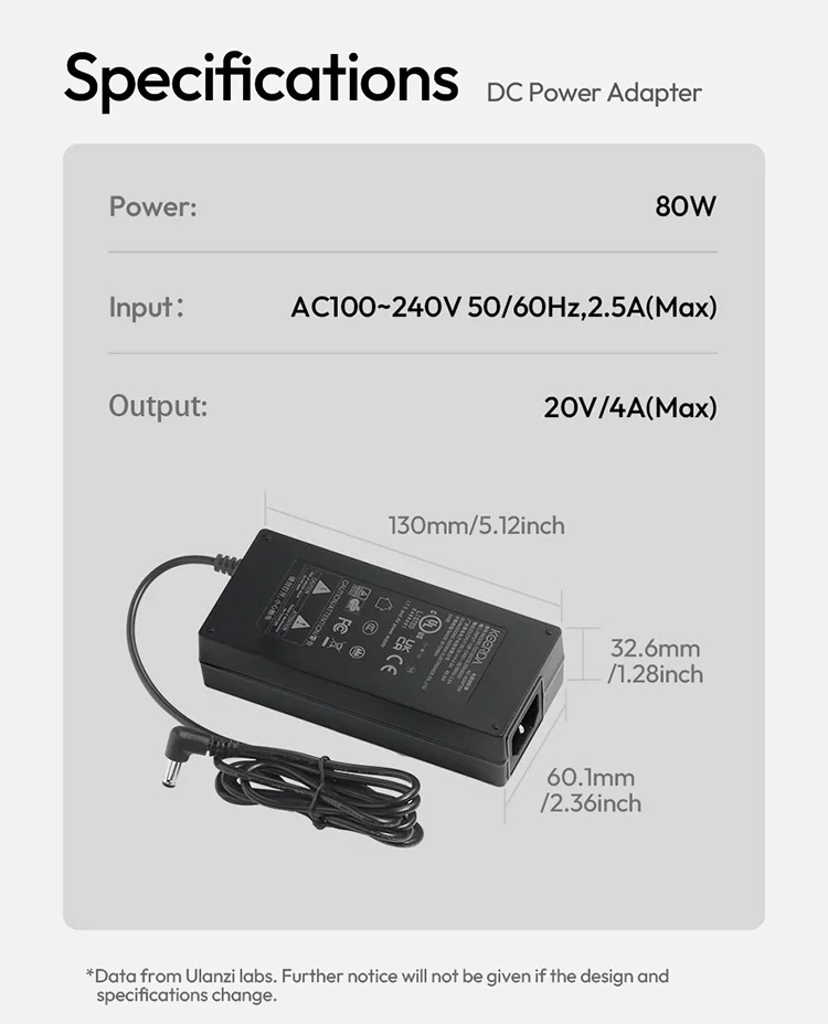 - Nguồn cấp điện: DC (20V/4A) và Type-C PD (20V/5A