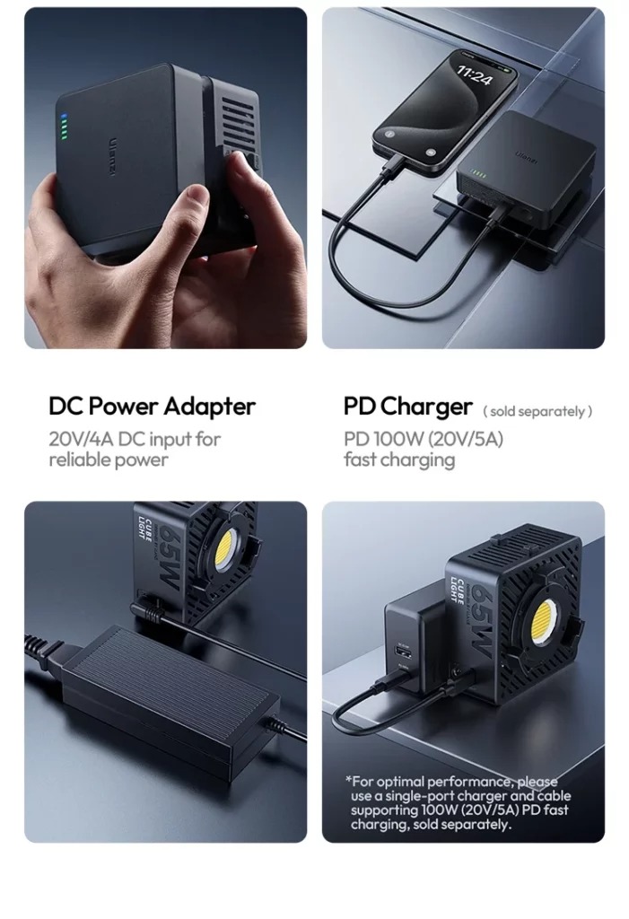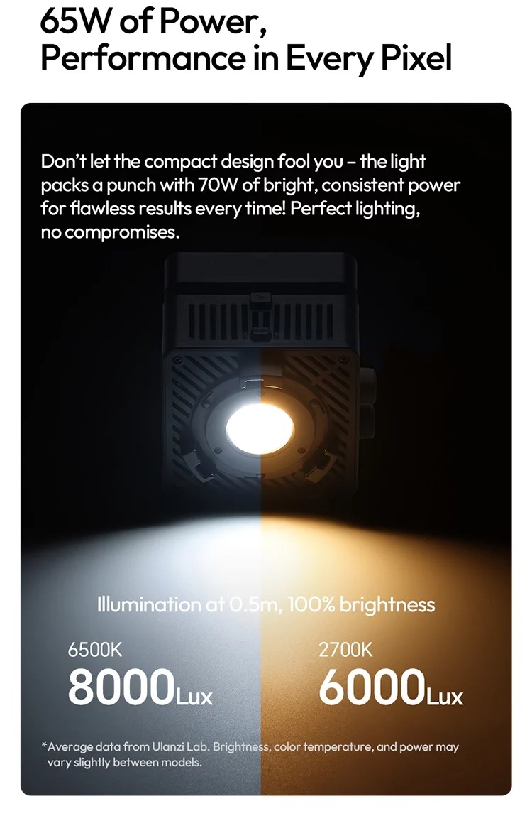 - Công suất cao lên đến 65W, độ sáng 8000 lux ở 0,5 mét (6500K)