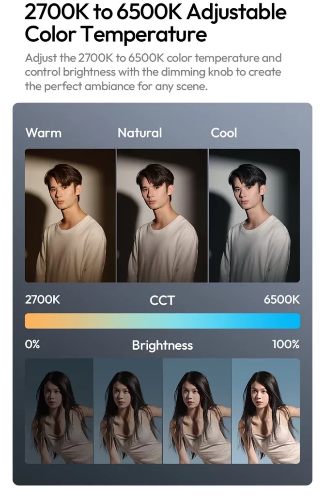- Nhiệt độ màu (CCT): Từ 2500K đến 6500K