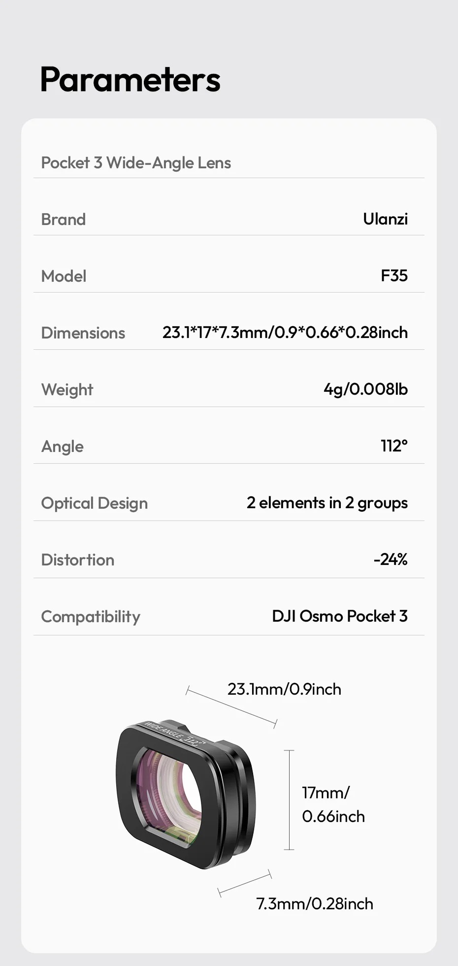 - Mã sản phẩm: F35 Pocket 3 Wide-Angle Lens