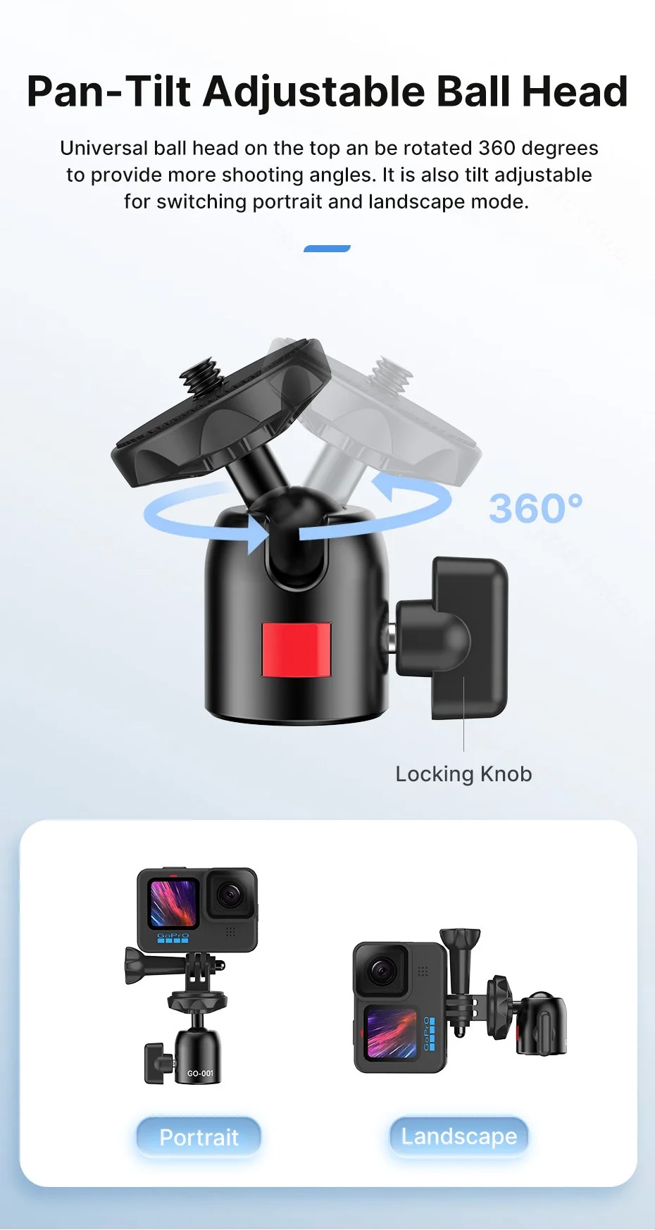 - Ballhead xoay 360 độ dễ dàng điều chỉnh góc quay phù hợp.