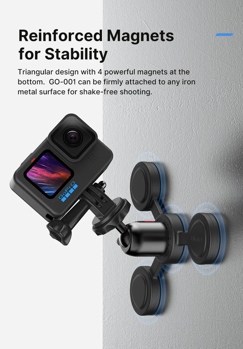 - Bộ đế tích hợp 4 tấm nam châm với lực hút cực mạnh, có thể gắn lên bất kỳ bề mặt kim loại nào.