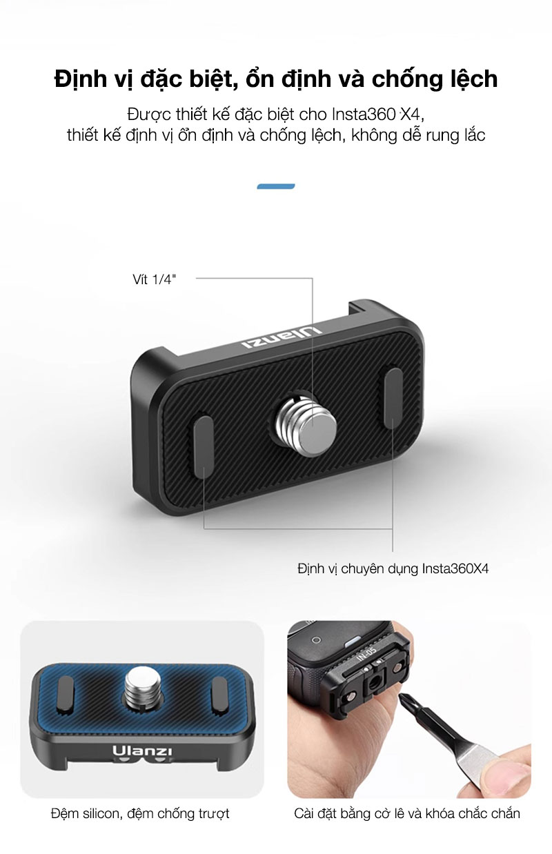- Được thiết kế đặc biệt cho Insta360 X4, thiết kế định vị ổn định và chống lệch, không dễ rung lắc