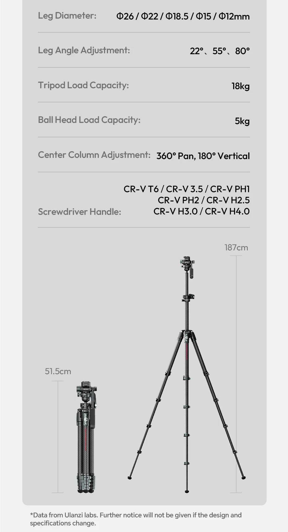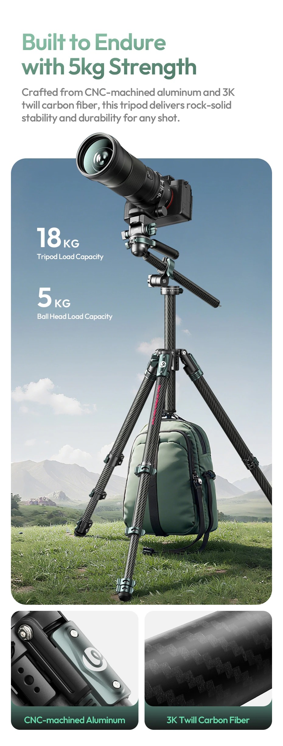 - Tải trọng tripod: 18kg