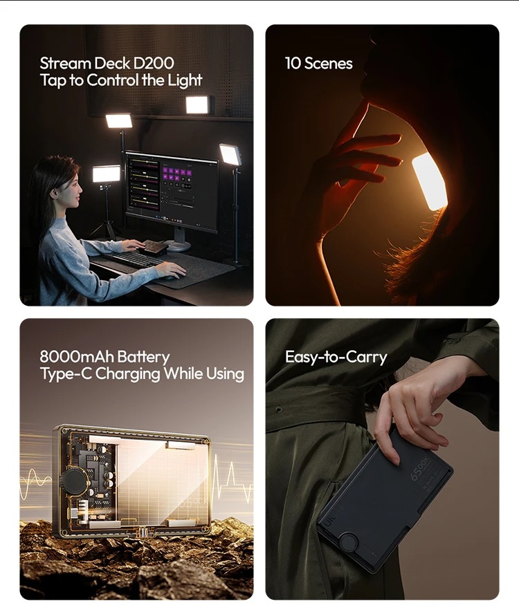 - Dễ dàng kiểm soát control qua Ulanzi U-Studio bằng StreamDesk Ulanzi D200