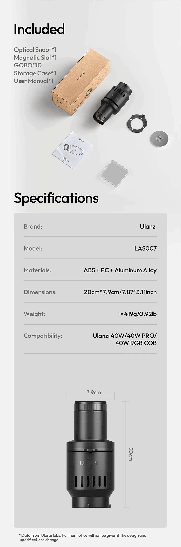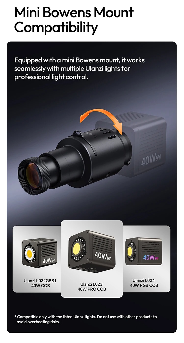 - Tương thích: Ulanzi 40W/40W PRO/ 40W RGB COB