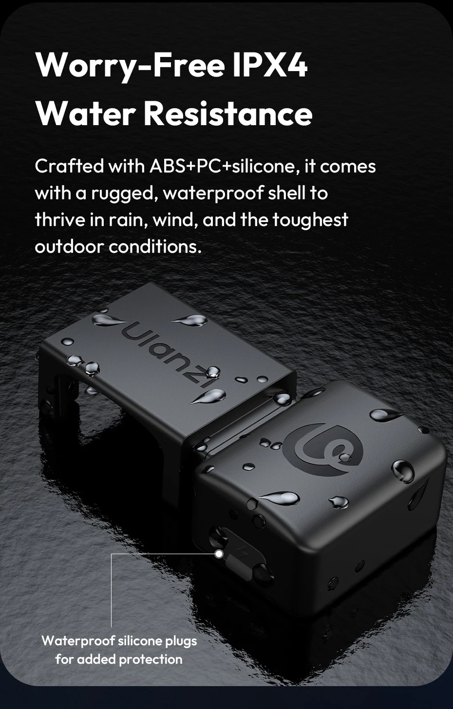 - Được chế tạo bằng ABS+PC+silicon, sản phẩm có lớp vỏ chắc chắn, chống thấm nước để hoạt động tốt trong điều kiện mưa, gió và những điều kiện ngoài trời khắc nghiệt nhất.