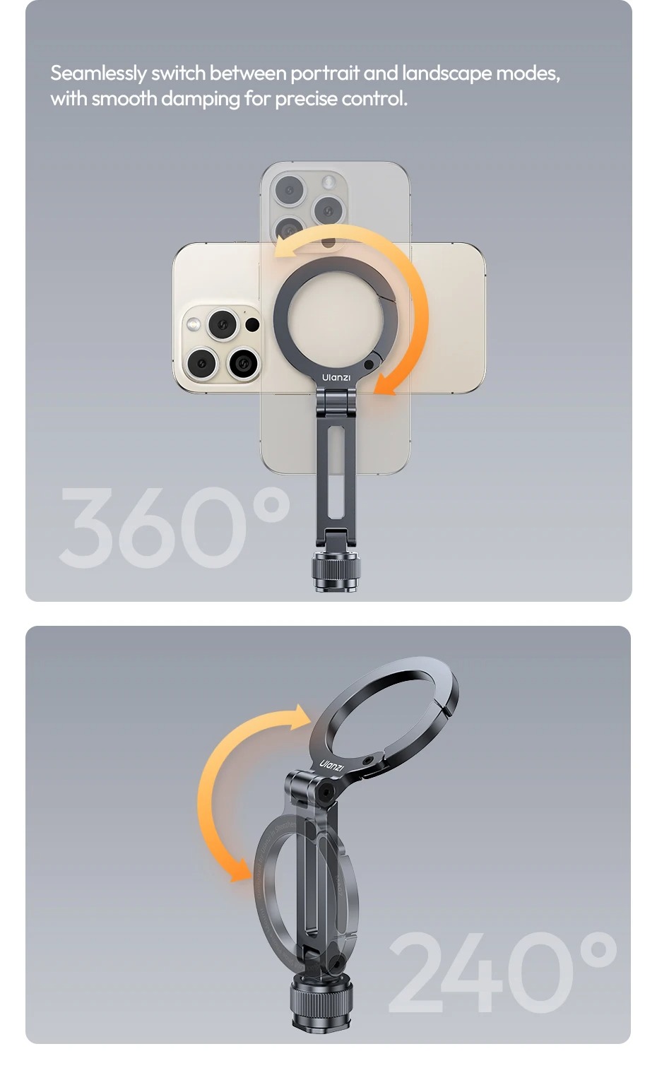 - Chuyển đổi liền mạch giữa chế độ dọc và ngang, với khả năng giảm xóc mượt mà để điều khiển chính xác.