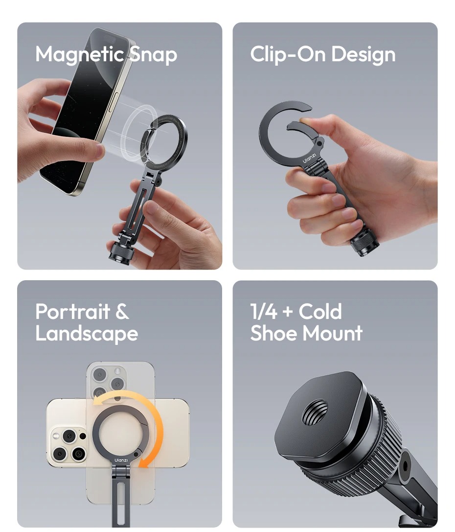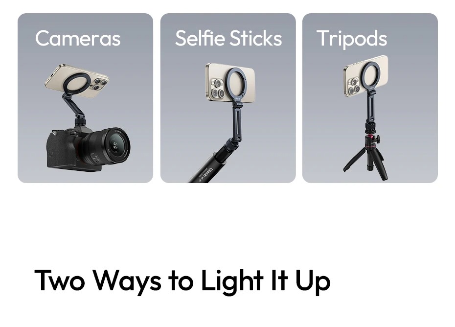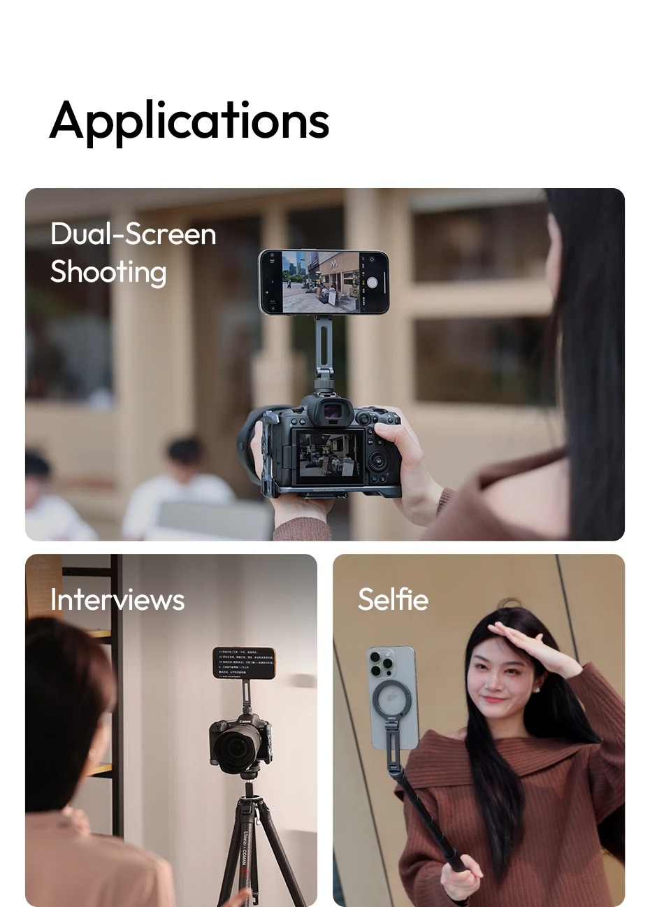- Hoạt động liền mạch với máy ảnh, chân máy và gậy tự sướng, mở ra vô vàn sáng tạo.