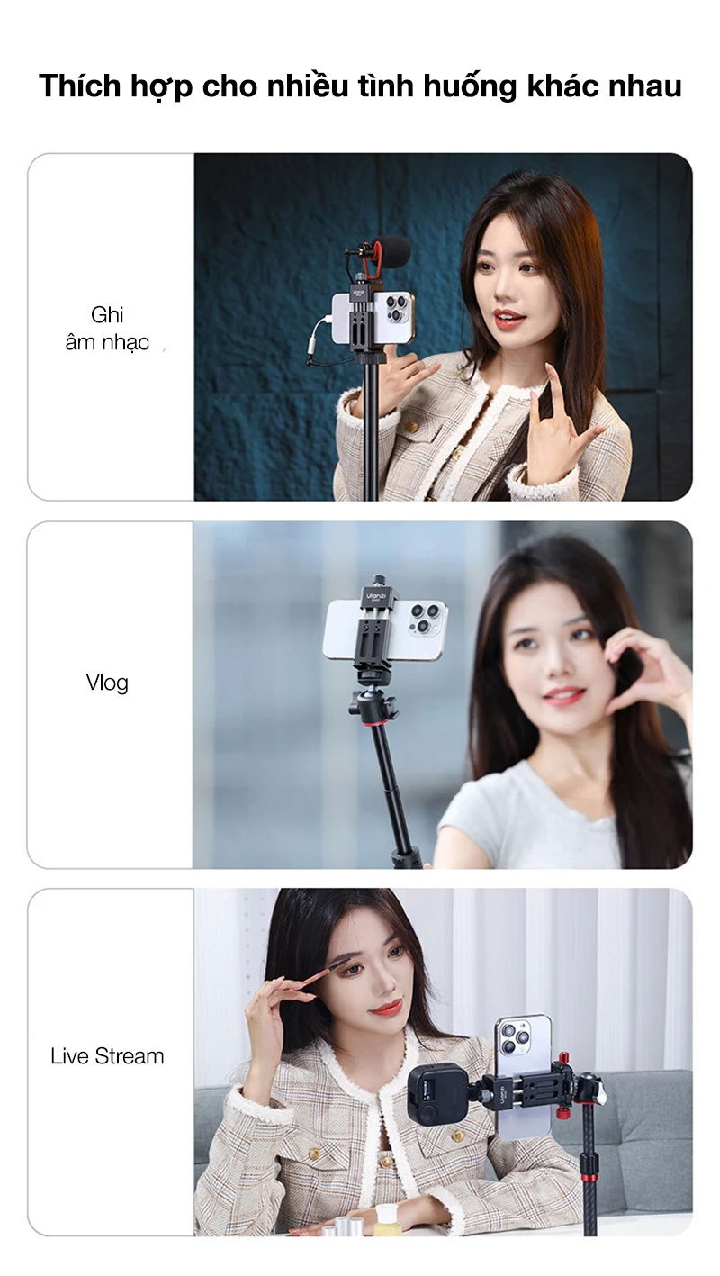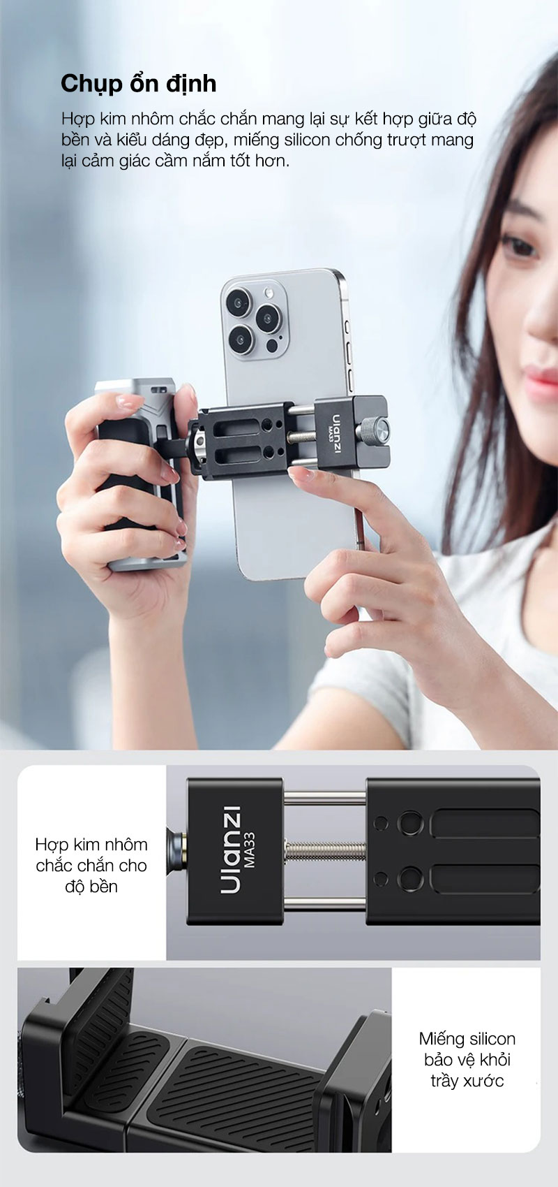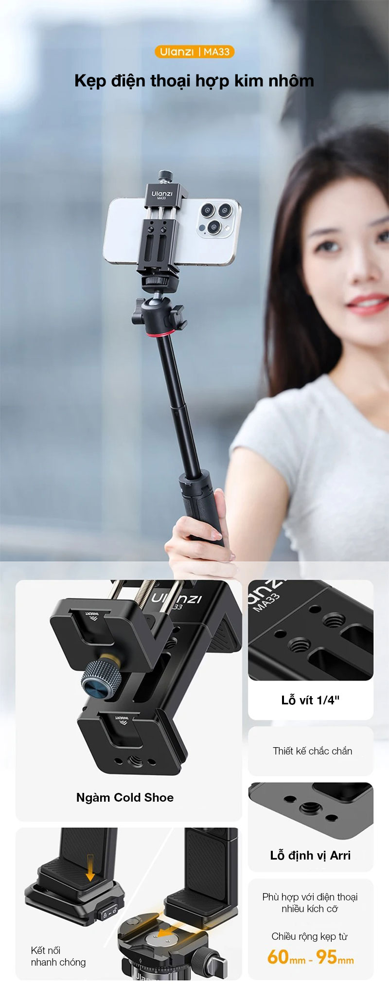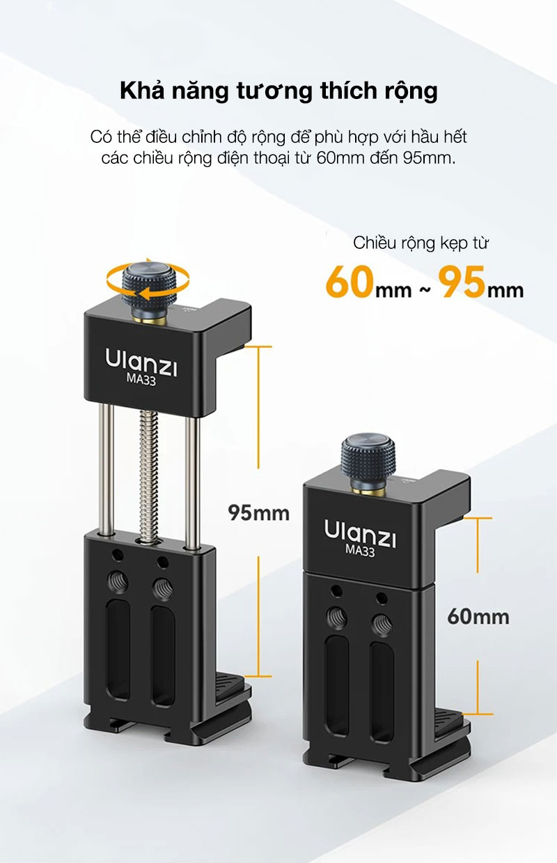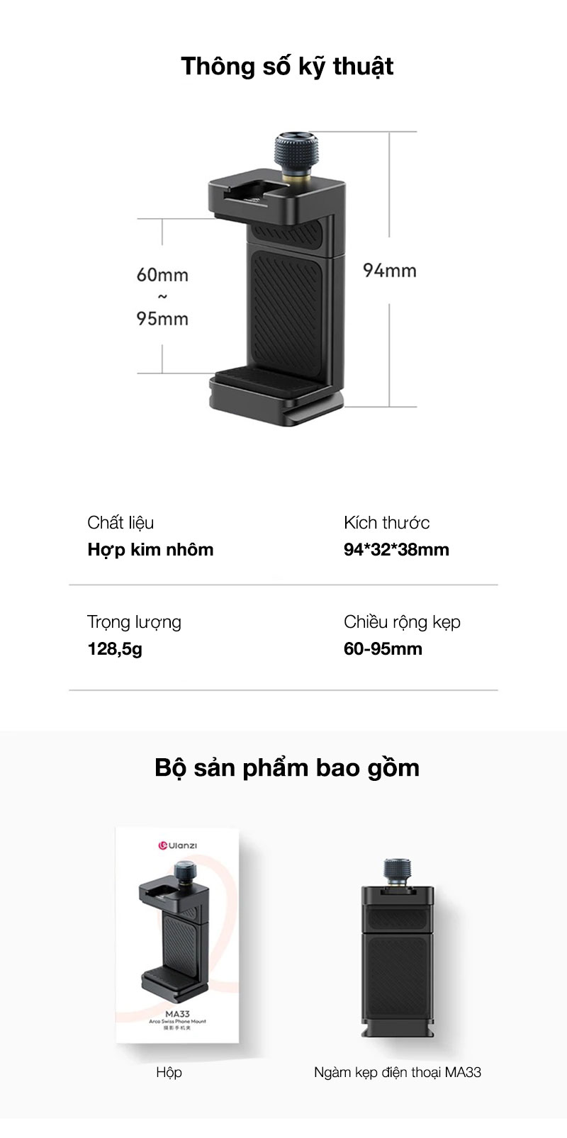 - Ngưỡng kẹp 60 - 95mm phù hợp với hầu hết các loại điện thoại thông minh hiện có trên thị trường