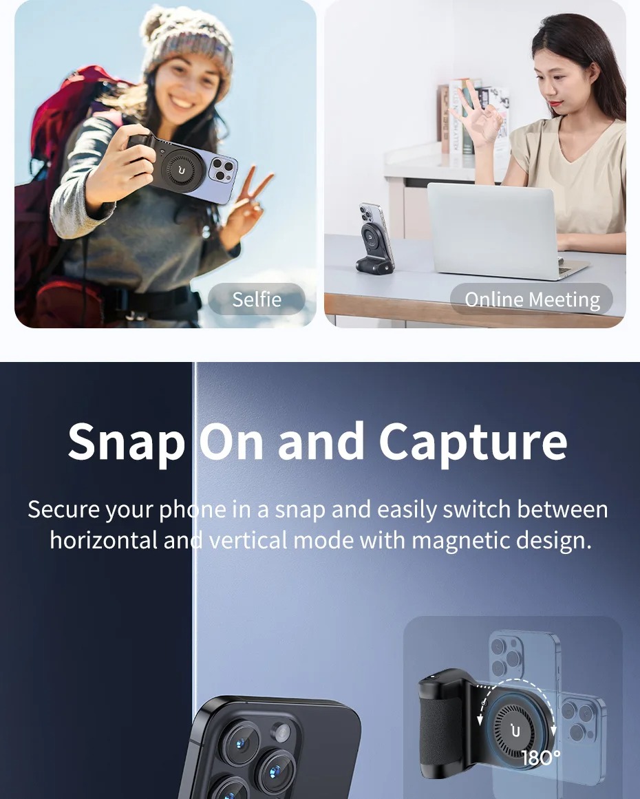 - Giữ chặt điện thoại của bạn và dễ dàng chuyển đổi giữa chế độ ngang và dọc nhờ thiết kế từ tính.