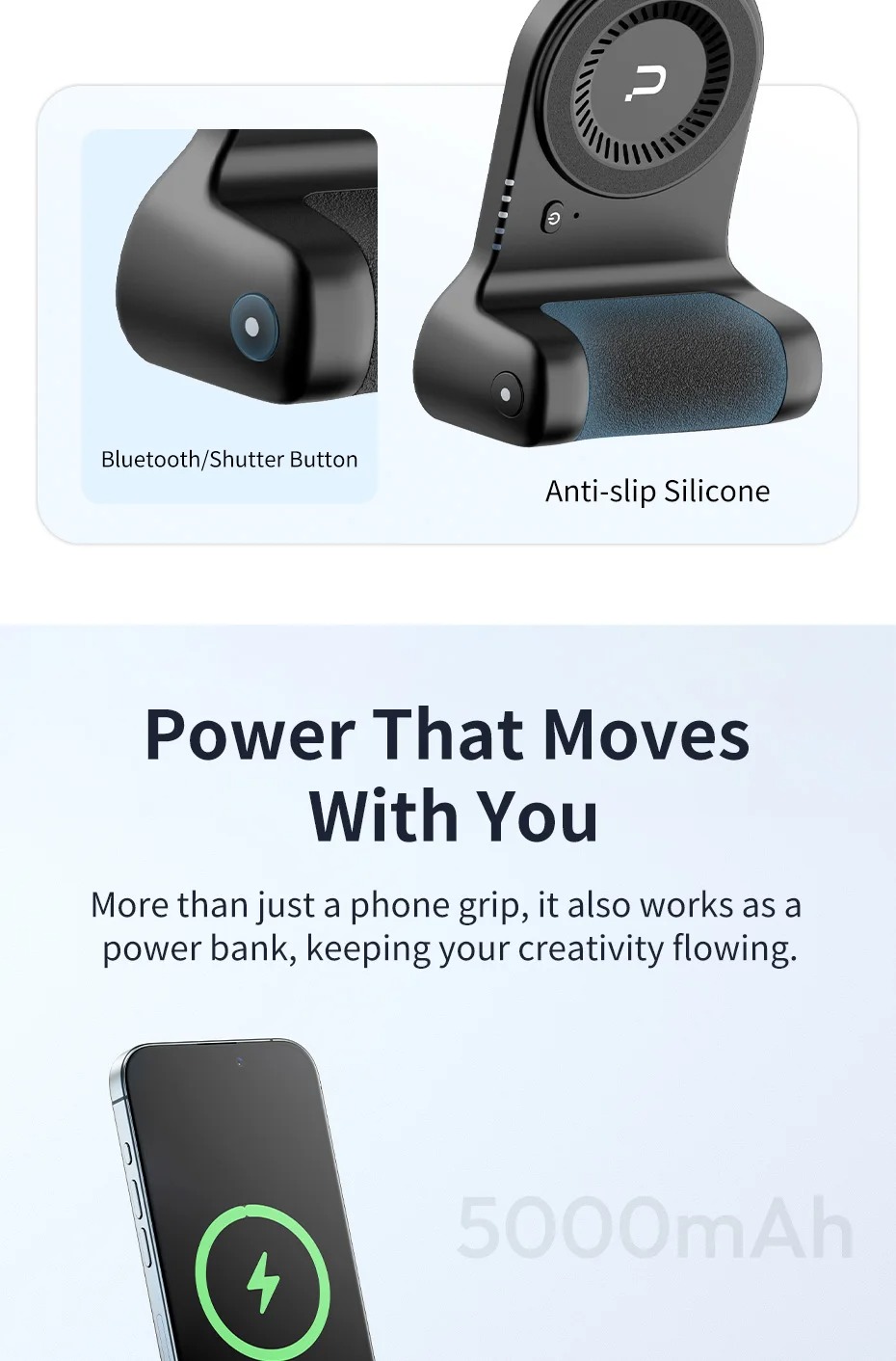 - Không chỉ là giá đỡ điện thoại, nó còn có chức năng như một pin dự phòng 5000mAh, giúp bạn thỏa sức sáng tạo.