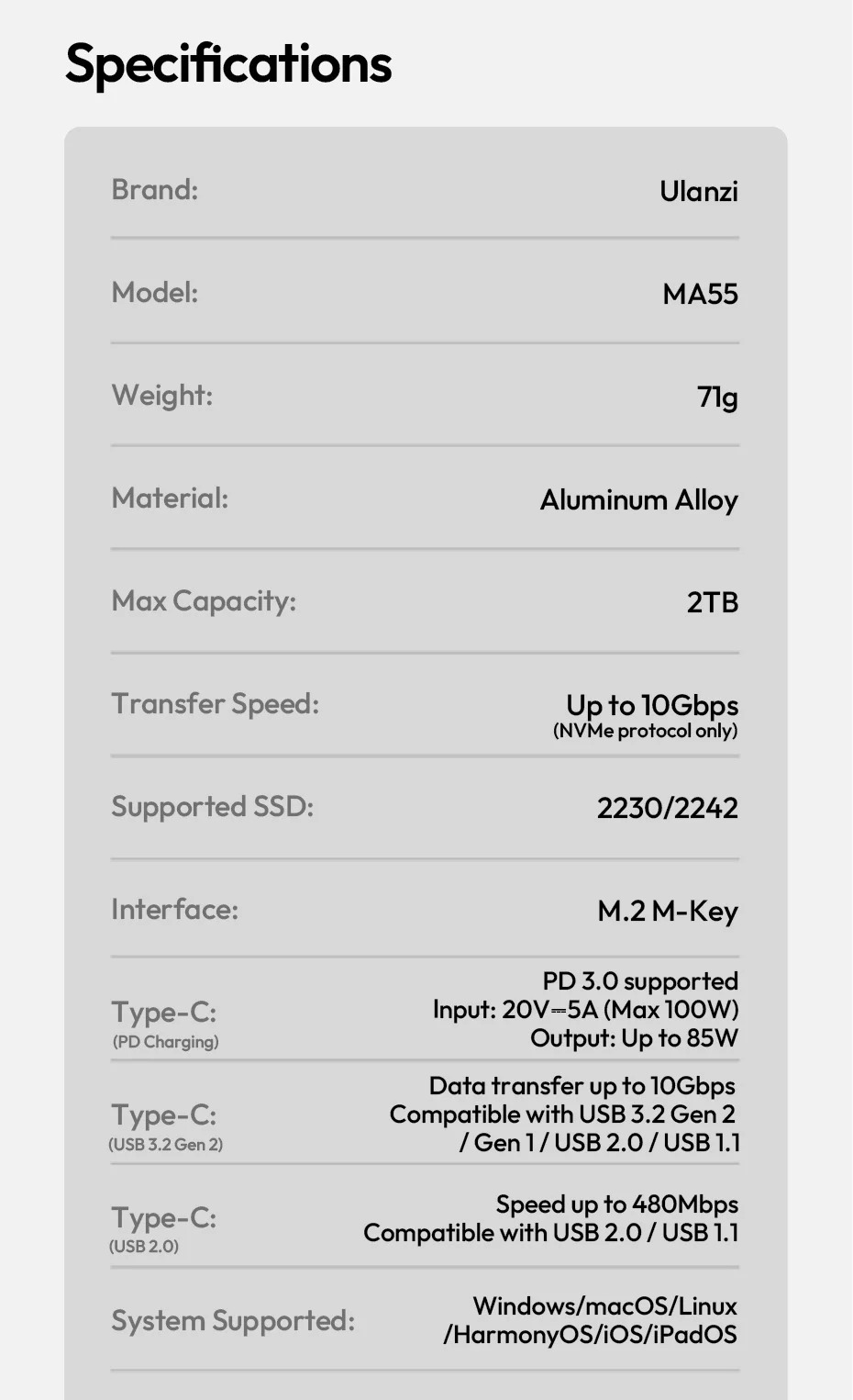 - 1 x Box ổ cứng từ tính Ulanzi MA55