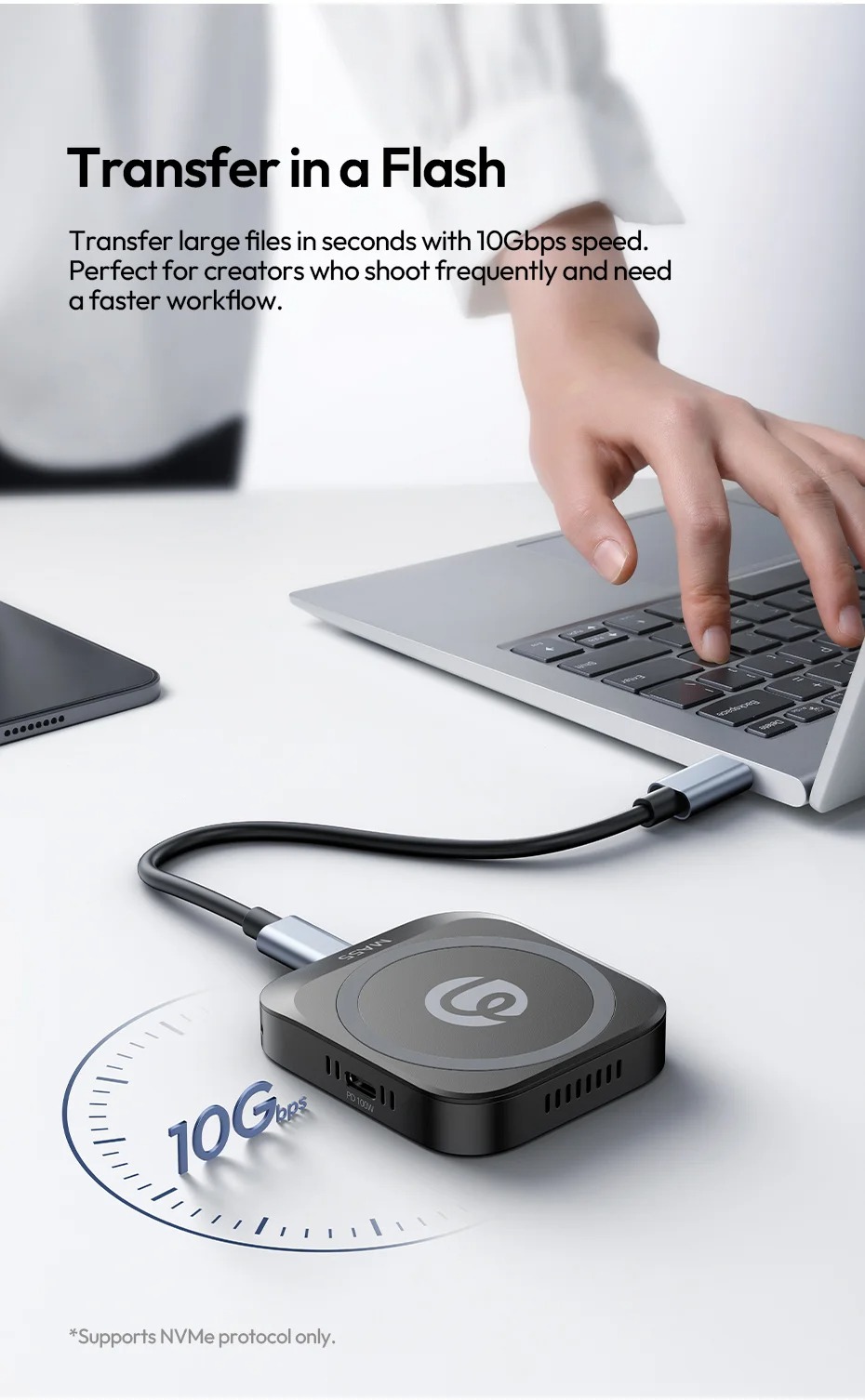 - Tốc độ truyền tải: Lên đến 10Gbps (Chỉ giao thức NVMe)