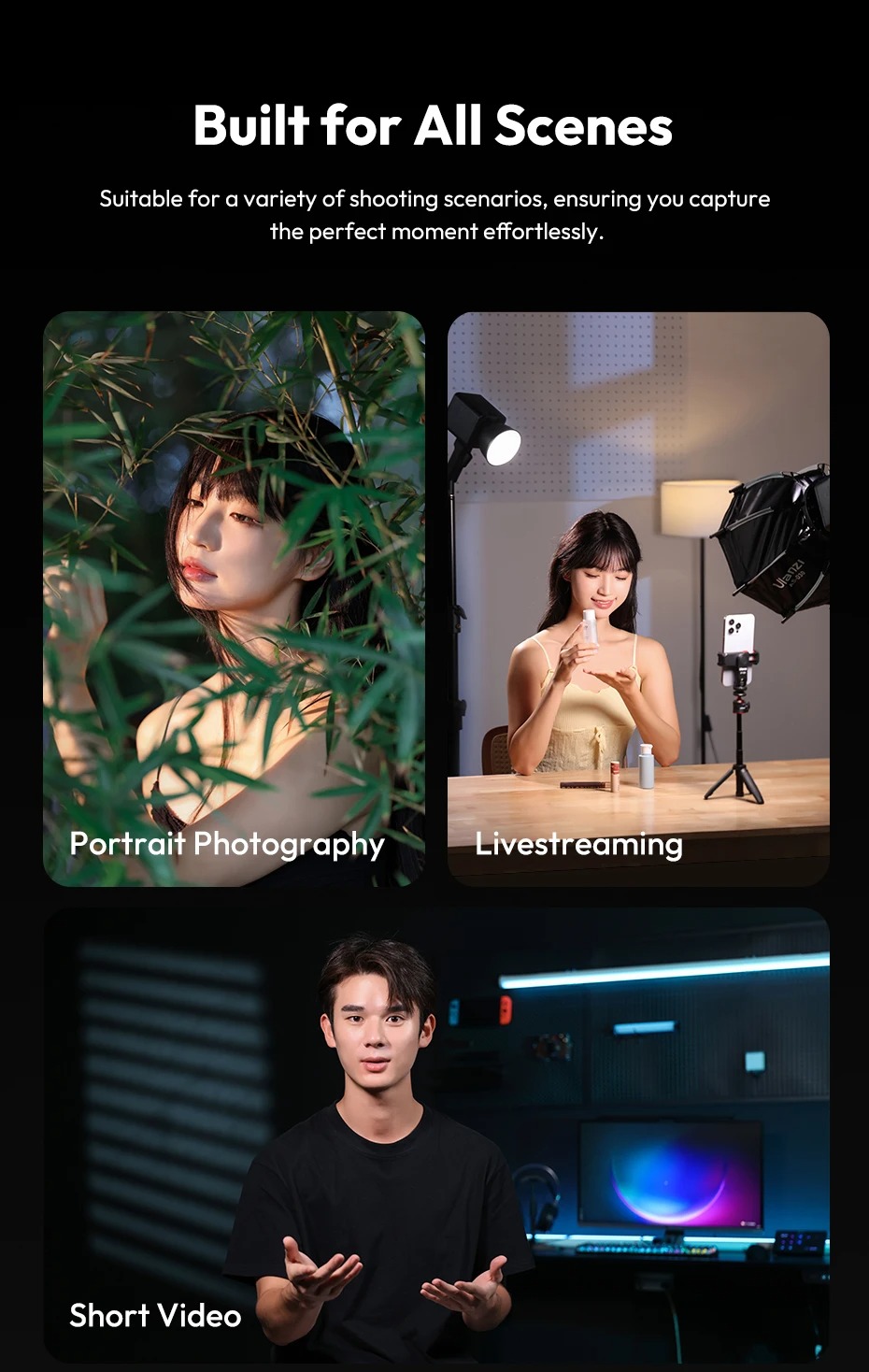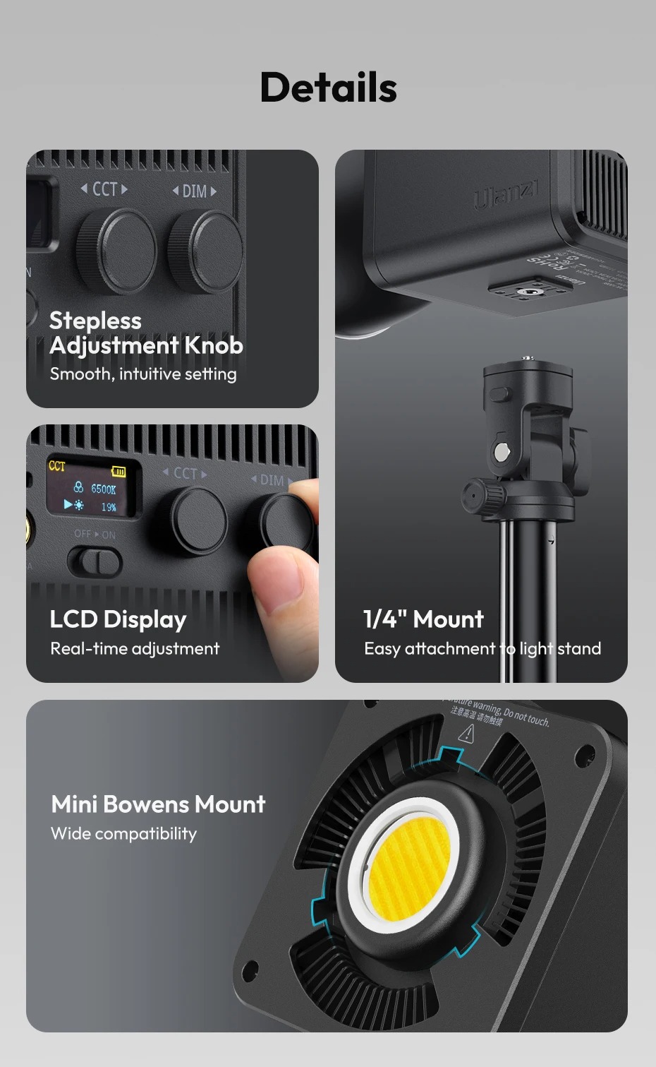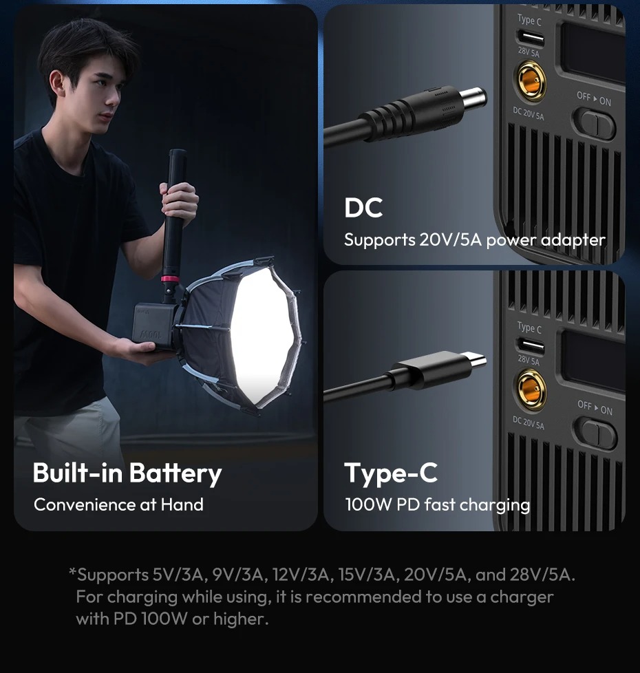 - Được thiết kế để dễ dàng di chuyển, đèn cầm tay này cho phép dễ dàng di chuyển giữa các địa điểm và chụp ảnh khi đang di chuyển.