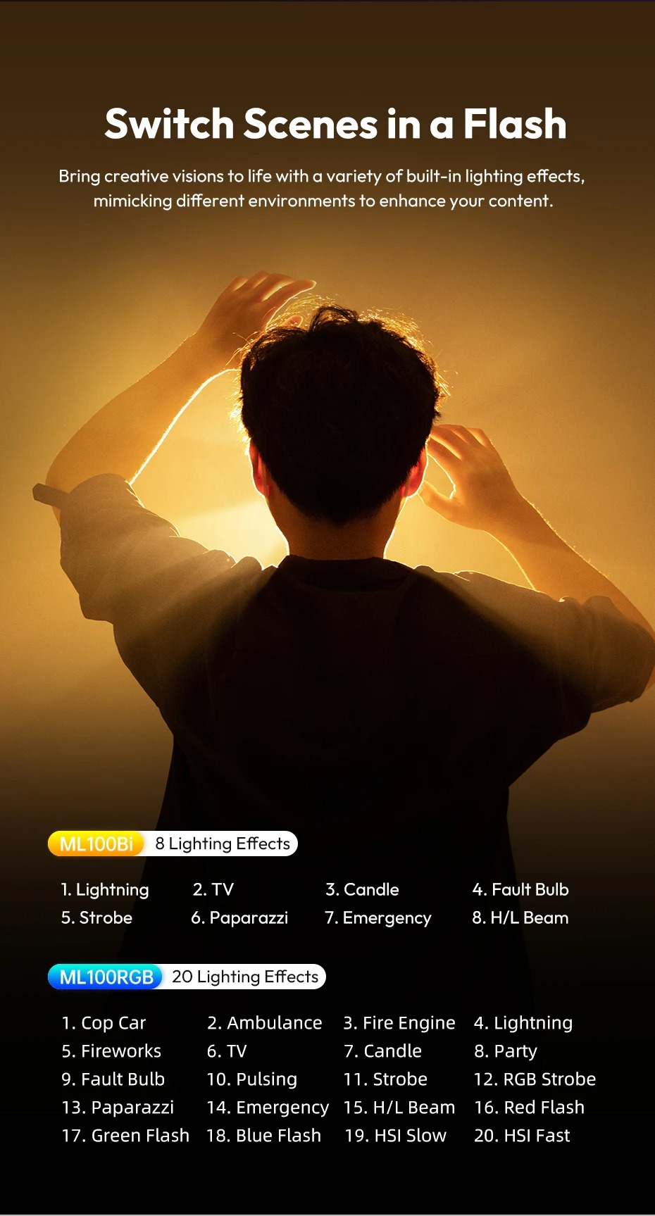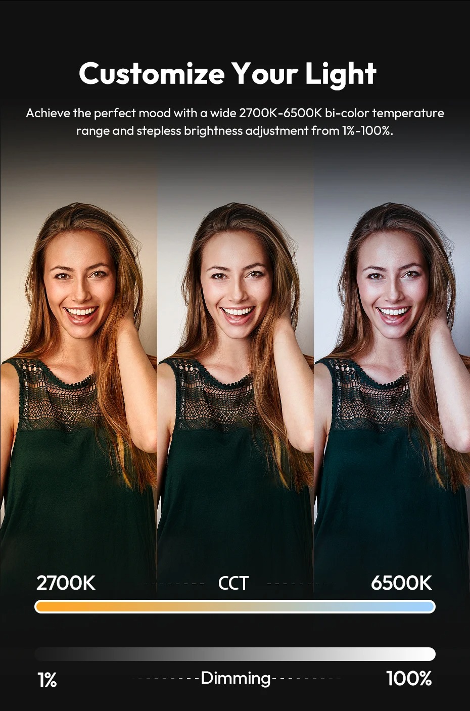 - Đạt được tâm trạng hoàn hảo với dải nhiệt độ hai màu rộng 2700K-6500K và khả năng điều chỉnh độ sáng liên tục từ 1%-100%.